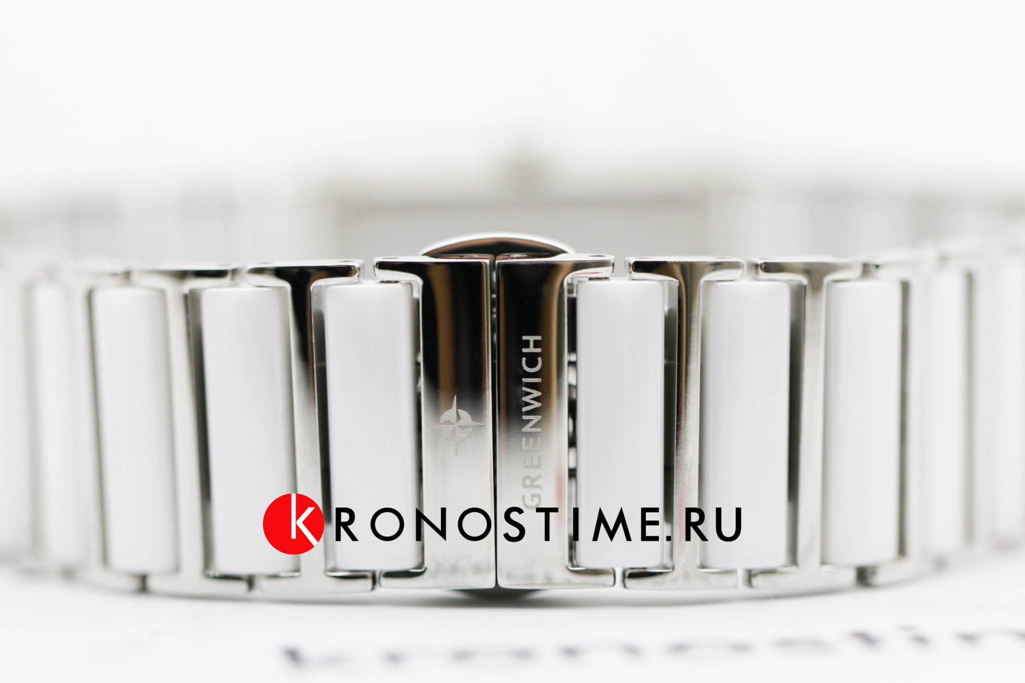 Английские женские кварцевые часы с минеральным стекломМинеральное стеклоМинеральное стекло представляет собой искусственно выращенный минерал кварца. Такое стекло отличается особой устойчивостью к повреждениям и царапинам. Уступает по некоторым качествам сапфировому стеклу. Greenwich GW 521.10.33, кварцевый механизм с высокой точностью. Класс водозащиты: 50 метров, позволит защитить корпус от случайных брызг или капель дождя. Корпус часов изготовлен из стали серебристого цвета с керамическими вставками. Браслет с застёжкой-бабочкой с кнопкамиЗастёжка "бабочка"Такой вид застёжки дополняется предохранителями, помогающими избежать случайного раскрытия браслета. Обладают изящным исполнением. .