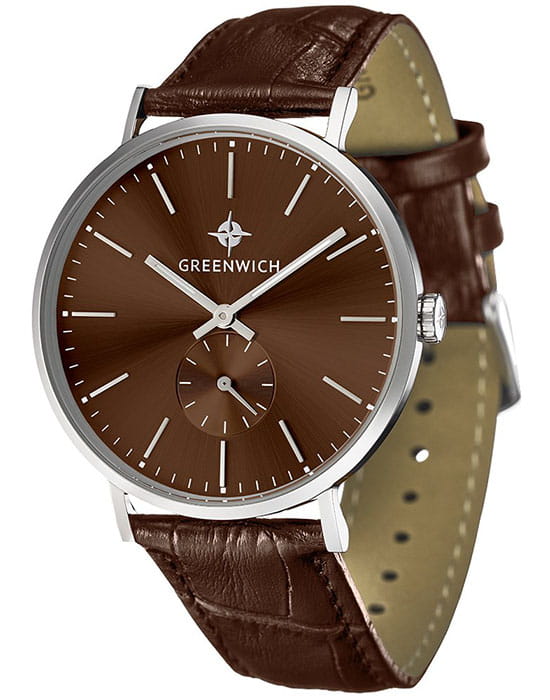 Мужские наручные часы Greenwich GW 012.12.32 представляют собой классический вариант для повседневной носки. Циферблат украшается брендовым логотипом, изображающим Розу Ветров. Эмблема мореплавательского духа символизирует удачу, стремление достигнуть поставленной цели. Часы характеризуются традиционными формами, лаконичным исполнением, что делает модель элегантным дополнением к деловому костюму. Надёжный корпус из нержавеющей стали спасает японский механизм от повреждений и ударов. Минеральное стеклоМинеральное стеклоМинеральное стекло представляет собой искусственно выращенный минерал кварца. Такое стекло отличается особой устойчивостью к повреждениям и царапинам. Уступает по некоторым качествам сапфировому стеклу. отличается устойчивостью к образованию царапин на поверхности. Кожаный ремешок на стандартной застёжке.