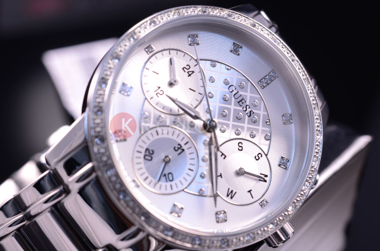 Классические наручные женские часы. Корпус часов выполнен из высокопрочной стали с антикоррозийными свойствами . Дизайн циферблата и стрелок исполнен в строгом и лаконичном стиле бренда Guess. Часы укомплектованы минеральным стеклом, устойчивым к появлению царапин и удерживаются на руке браслетом из нержавеющей стали. Часы станут прекрасным дополнением к образу.