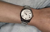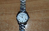 Стальные, окошко даты с увеличительным стеклом. Показывают день недели, защита от капель и брызг воды (дождя).