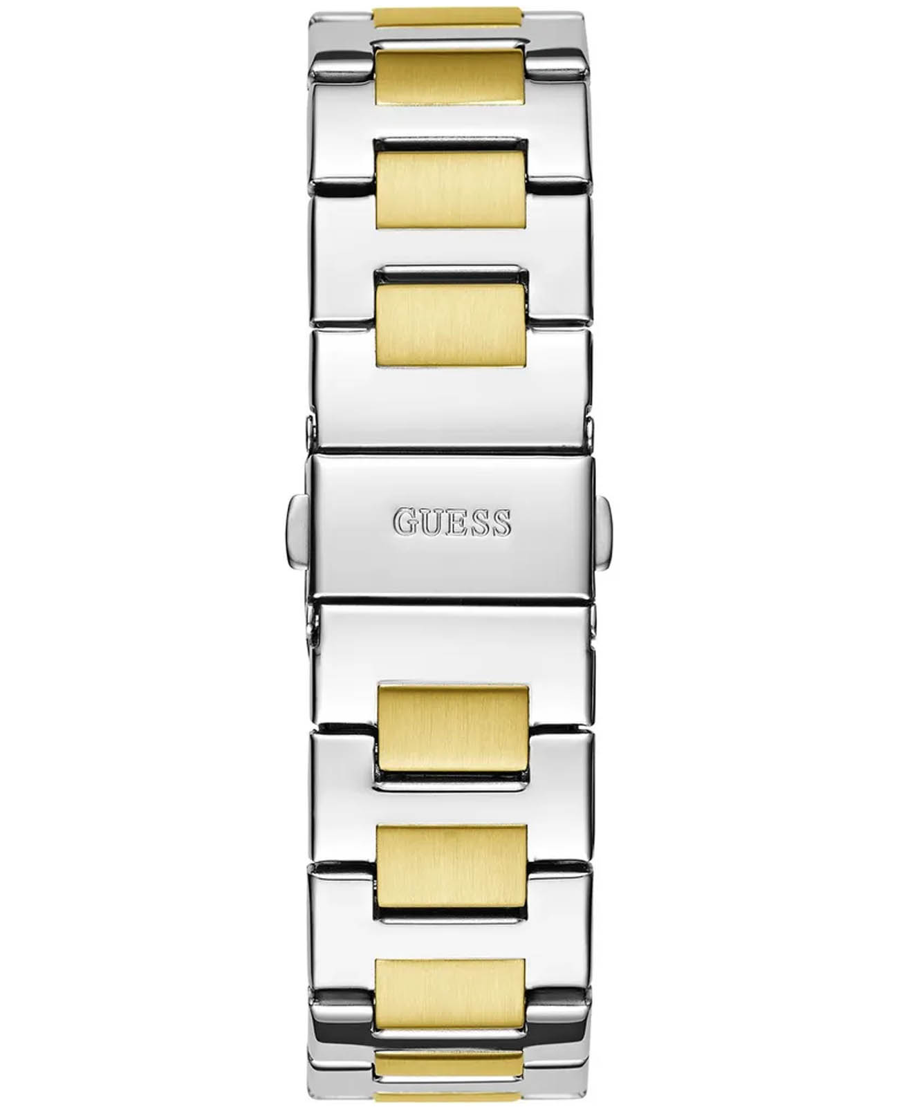 Женские наручные часы Guess Dress GW0769L3 с минеральным стекломМинеральное стеклоМинеральное стекло представляет собой искусственно выращенный минерал кварца. Такое стекло отличается особой устойчивостью к повреждениям и царапинам. Уступает по некоторым качествам сапфировому стеклу., кварцевый механизм с высокой точностью. Корпус часов изготовлен из стали. БезельБезельВнешний ободок, закрепляющий стекло. В спортивных часах так называется поворотное кольцо с делениями на циферблате, выполняет роль таймера – замеряет отрезки времени на шкале. Неподвижный безель – элемент декора. Однонаправленно вращающийся безель на дайверских часах позволяет фиксировать моменты погружения и выныривания на поверхность. с IP-покрытиемIP-покрытиеМетод ионного напыления. Демонстрирует повышенную устойчивость к истиранию, окислению и химическим веществам. Под воздействием высокого давления и температуры около 1500°C молекулы металла надёжно соединяются с частицами корпуса часов.. Стрелки с люминесцентным покрытиемЛюминесцентное покрытиеПозволяет считывать показания времени в темноте. Производители наносят на стрелки, часовые индексы, безель или поверхность циферблата светонакопительный состав, дающий холодное свечение.. Класс водозащиты: 50 метров, позволит защитить корпус от случайных брызг или капель дождя. Стальной браслет с частичным IP-покрытиемIP-покрытиеМетод ионного напыления. Демонстрирует повышенную устойчивость к истиранию, окислению и химическим веществам. Под воздействием высокого давления и температуры около 1500°C молекулы металла надёжно соединяются с частицами корпуса часов. на раскладной застёжкеРаскладная застёжкаТакой тип застёжки используется только на браслетах из металла. Она никогда не раскрывается полностью, происходит разделение на 2 и более частей. Раскладывающая застёжка снизит вероятность потери часов к минимуму..
