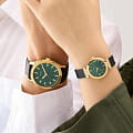 Женские наручные часы Guess GW0912L4 — это элегантность и стиль, воплощенные в современном дизайне. Часы оснащены надежным кварцевым механизмом, обеспечивающим точность и долговечность. Круглый корпус из стали с золотистым IP-покрытиемIP-покрытиеМетод ионного напыления. Демонстрирует повышенную устойчивость к истиранию, окислению и химическим веществам. Под воздействием высокого давления и температуры около 1500°C молекулы металла надёжно соединяются с частицами корпуса часов. и полированной поверхностью украшен кристаллами, что придает модели особый блеск и утонченность. Зеленый циферблат с гильошированным узором в центральной части создает эффектный визуальный акцент. Метки в виде штрихов и арабских цифр обеспечивают легкость восприятия времени. Рифленая заводная головка добавляет изысканности и подчеркивает внимание к деталям. Силиконовый ремешок с классической застежкой обеспечивает комфортное ношение и надежную фиксацию на запястье. Минеральное стеклоМинеральное стеклоМинеральное стекло представляет собой искусственно выращенный минерал кварца. Такое стекло отличается особой устойчивостью к повреждениям и царапинам. Уступает по некоторым качествам сапфировому стеклу. защищает циферблат от царапин и повреждений, а водозащита 30WR предохраняет часы от случайных брызг и дождя. Эта модель станет прекрасным дополнением к вашему образу, сочетая в себе функциональность и изящество.