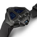 Швейцарские кварцевые часы Hamilton Ventura Edge Dune Limited Edition H24624330 созданы в тесном сотрудничестве с мастером по реквизиту фильма "Дюна: Часть вторая". Часы выполнены в стиле наручного устройства и имеют угловатый матово-черный угловой корпус с PVD-покрытиемPVDУльтратонкое покрытие наносится в технике вакуумного напыления, сочетает в себе нитрид титана особой прочности со слоем золота или оксида хрома. Несёт в себе декоративную или защитную функцию.. Их цифровой дисплей светится синим цветом, что указывает на безошибочно узнаваемые голубые глаза фременов, а циферблат имитирует рельефные элементы, которые мы можем видеть на реквизите в фильме. Циферблат оснащён дисплеем в двумя экранами: на верхнем отображаются часы, на нижнем – минуты. Большая заводная коронка оснащена кнопкой подсветки, которая гаснет с небольшой вспышкой, как и в оригинальных Desert Watch. Эта модель, выпущенная ограниченным тиражом, поставляется в памятной упаковке, вдохновленной фильмом, которую поклонники фильмов и книг, а также коллекционеры не захотят пропустить! На внутренней стороне коробки часов выгравированы слова знаменитой литании против страха.