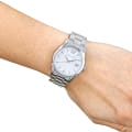 Швейцарские женские часы Hamilton Jazzmaster Lady Quartz H32351115 с надёжным кварцевым механизмом. Корпус часов изготовлен из нержавеющей стали. Стальной браслет на застёжке-бабочке с кнопкамиЗастёжка "бабочка"Такой вид застёжки дополняется предохранителями, помогающими избежать случайного раскрытия браслета. Обладают изящным исполнением. . Сапфировое стеклоСапфировое стеклоПрочный и надёжный материал из кристалла сапфира синтетического происхождения, характеризующийся особой твёрдостью и устойчивостью к царапинам и повреждениям. с антибликовым покрытием. Стрелки и метки с люминесцентным покрытиемЛюминесцентное покрытиеПозволяет считывать показания времени в темноте. Производители наносят на стрелки, часовые индексы, безель или поверхность циферблата светонакопительный состав, дающий холодное свечение.. Окошко даты находится в положении 3 часа.