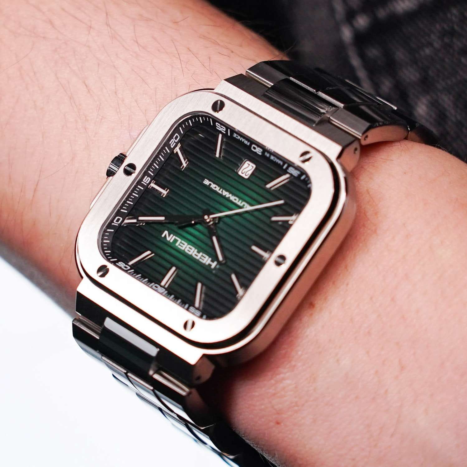 Мужские механические часы с автоподзаводом Herbelin Cap Camarat 1646A16CA – отражающий идеальное сочетание современного дизайна, надёжности и функциональности. Элегантный облик станет превосходным завершением образа, наделив его индивидуальным характером. Корпус из нержавеющей стали серебристого цвета, размером 39 х 39 мм, идеально сбалансирован и элегантен. Сапфировое стеклоСапфировое стеклоПрочный и надёжный материал из кристалла сапфира синтетического происхождения, характеризующийся особой твёрдостью и устойчивостью к царапинам и повреждениям. защищает циферблат от царапин и устойчивое к механическим повреждениям. БезельБезельВнешний ободок, закрепляющий стекло. В спортивных часах так называется поворотное кольцо с делениями на циферблате, выполняет роль таймера – замеряет отрезки времени на шкале. Неподвижный безель – элемент декора. Однонаправленно вращающийся безель на дайверских часах позволяет фиксировать моменты погружения и выныривания на поверхность. украшен винтами, заводная головка с защитой. Окошко даты находится в положении 6 часов. Стрелки и метки с люминесцентным покрытиемЛюминесцентное покрытиеПозволяет считывать показания времени в темноте. Производители наносят на стрелки, часовые индексы, безель или поверхность циферблата светонакопительный состав, дающий холодное свечение.. Каучуковый ремешок на стандартной застежке обеспечивает комфортное ношение. Водозащита 100 метров позволит плавать, нырять и заниматься другими водными видами спорта. Эта модель – отличный выбор для тех, кто ищет сочетание стиля, качества и функциональности. Часы станут не только полезным аксессуаром, но и выразительным элементом вашего имиджа.