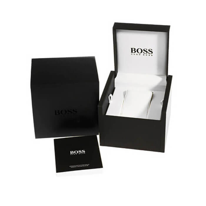Мужские кварцевые часы Hugo Boss Commissioner HB1513714 представляют собой стильный хронографХронографФункция позволяет измерять отрезки времени с особой точностью: часы, минуты, секунды. Верным признаком хронографа является наличие на циферблате 3 дополнительных окошек-счётчиков. с круглым корпусом диаметром 44 мм из нержавеющей стали с IP-покрытиемIP-покрытиеМетод ионного напыления. Демонстрирует повышенную устойчивость к истиранию, окислению и химическим веществам. Под воздействием высокого давления и температуры около 1500°C молекулы металла надёжно соединяются с частицами корпуса часов. черного цвета. Модель оснащена высокоточным кварцевым механизмом с функцией хронографаХронографФункция позволяет измерять отрезки времени с особой точностью: часы, минуты, секунды. Верным признаком хронографа является наличие на циферблате 3 дополнительных окошек-счётчиков., включая 60-минутный счетчик и 24-часовой индикатор, а также тахиметрической шкалойТахиметрРазмеченная шкала, располагается на ободке или безеле часов. Тахиметр позволяет рассчитать скорость на определённом участке пути, расстояние измеряется в километрах или милях. для расчетов скорости. Черный циферблат с серебристыми стрелками и индексами обеспечивает оптимальную читаемость, защищен устойчивым к царапинам минеральным стекломМинеральное стеклоМинеральное стекло представляет собой искусственно выращенный минерал кварца. Такое стекло отличается особой устойчивостью к повреждениям и царапинам. Уступает по некоторым качествам сапфировому стеклу.. Водонепроницаемость 5 ATM (50 метров) защищает от брызг и дождя. Стальной браслет с IP-покрытиемIP-покрытиеМетод ионного напыления. Демонстрирует повышенную устойчивость к истиранию, окислению и химическим веществам. Под воздействием высокого давления и температуры около 1500°C молекулы металла надёжно соединяются с частицами корпуса часов. и раскладной застежкойРаскладная застёжкаТакой тип застёжки используется только на браслетах из металла. Она никогда не раскрывается полностью, происходит разделение на 2 и более частей. Раскладывающая застёжка снизит вероятность потери часов к минимуму. с фиксатором обеспечивает надежную посадку на запястье.
