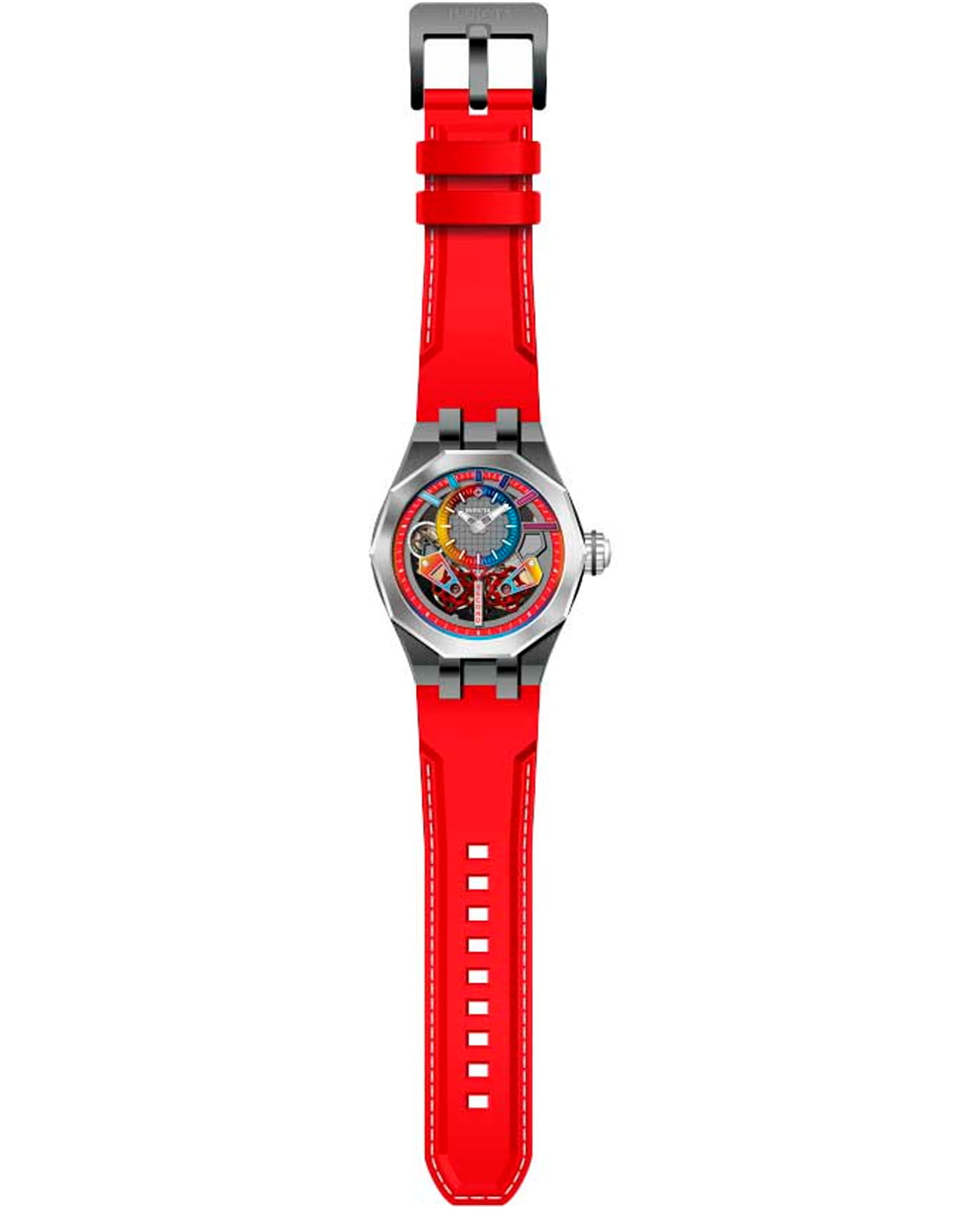 Мужские наручные часы Invicta Specialty IN43201 из коллекции Specialty сочетают в себе спортивный дизайн и надежность современных технологий. Модель обладает круглым корпусом диаметром 52 мм, выполненным из нержавеющей стали с IP-покрытиемIP-покрытиеМетод ионного напыления. Демонстрирует повышенную устойчивость к истиранию, окислению и химическим веществам. Под воздействием высокого давления и температуры около 1500°C молекулы металла надёжно соединяются с частицами корпуса часов., что обеспечивает высокую устойчивость к внешним воздействиям .  Ремешок часов изготовлен из красного силикона, гарантируя комфортное ношение и безопасность .  Циферблат дополнен индексными метками и светящимися стрелками с люминесцентным покрытиемЛюминесцентное покрытиеПозволяет считывать показания времени в темноте. Производители наносят на стрелки, часовые индексы, безель или поверхность циферблата светонакопительный состав, дающий холодное свечение., которые обеспечивают отличную видимость даже в темноте . На циферблате также присутствуют минутные деления по внешнему ободку, а также один малый циферблат для дополнительных функций . Для защиты используется минеральное стеклоМинеральное стеклоМинеральное стекло представляет собой искусственно выращенный минерал кварца. Такое стекло отличается особой устойчивостью к повреждениям и царапинам. Уступает по некоторым качествам сапфировому стеклу. Flame Fusion, которое обеспечивает прочность и устойчивость к царапинам .  Часы оснащены автоматическим механизмом, что гарантирует точность хода без необходимости подзаводки . Водонепроницаемость модели достигает 100 метров (10 атмосфер), что позволяет использовать их во время плавания и других водных видов спорта, однако не рекомендуется для глубоководного дайвинга . Сочетание практичности, надежности и стильного дизайна делает эту модель универсальным аксессуаром как для повседневной носки, так и для занятий спортом .