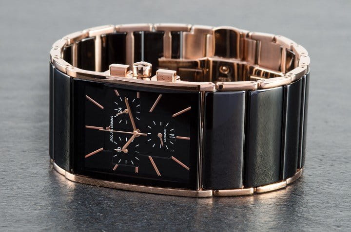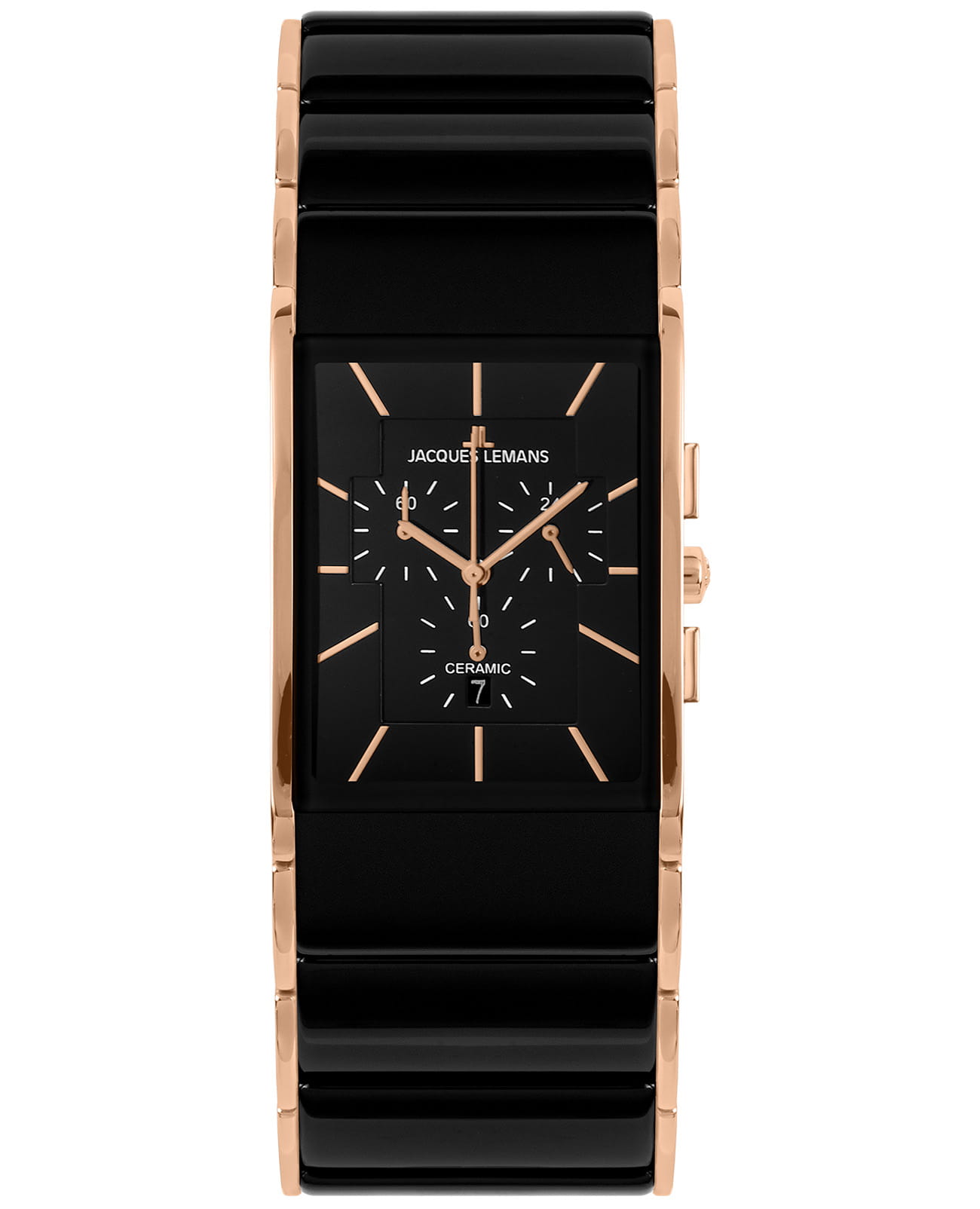 Мужские австрийские часы с хронографХронографФункция позволяет измерять отрезки времени с особой точностью: часы, минуты, секунды. Верным признаком хронографа является наличие на циферблате 3 дополнительных окошек-счётчиков. Jacques Lemans Dublin 1-1941B, кварцевый механизм с высокой точностью. Класс водозащиты: 50 метров, позволит защитить корпус от случайных брызг или капель дождя. Корпус часов изготовлен из стали с PVDPVDУльтратонкое покрытие наносится в технике вакуумного напыления, сочетает в себе нитрид титана особой прочности со слоем золота или оксида хрома. Несёт в себе декоративную или защитную функцию. покрытием цвета розовое золото. Браслет модели из высокотехнологичной керамикиВысокотехнологичная керамикаИнновационный запатентованный Rado материал с гладкой или матовой поверхностью. Керамика за счёт кристаллической структуры обладает повышенной устойчивостью от возникновения царапин. Материал способен принимать температуру тела человека, обеспечивая невероятный комфорт при ношении. черного цвета дополнен надежной .