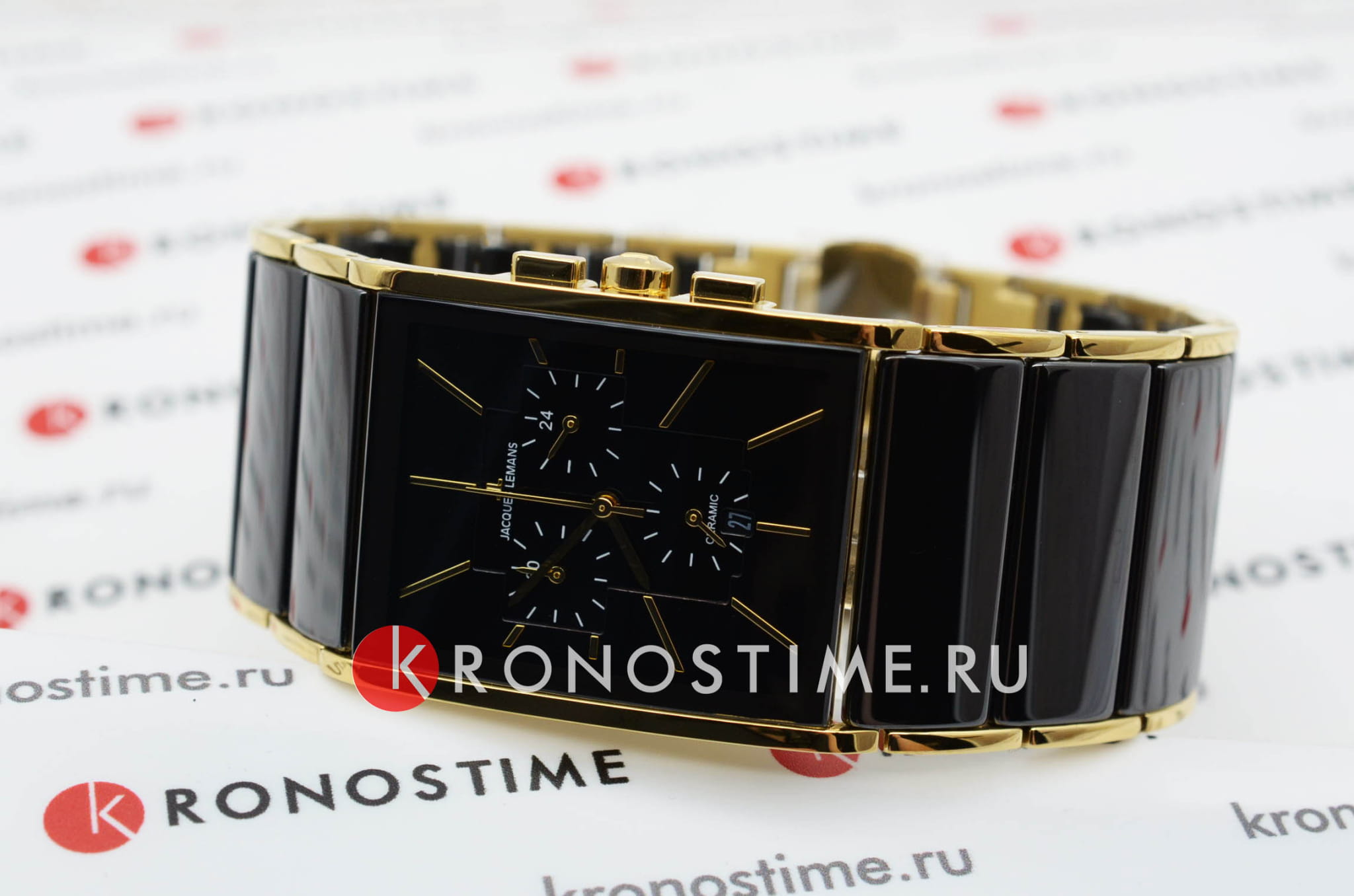 Стильные часы-хронографХронографФункция позволяет измерять отрезки времени с особой точностью: часы, минуты, секунды. Верным признаком хронографа является наличие на циферблате 3 дополнительных окошек-счётчиков. Jacques Lemans 1-1941D с функциями 24-х часового индикатора и датой. Прямоугольная форма корпуса из нержавеющей стали с PVDPVDУльтратонкое покрытие наносится в технике вакуумного напыления, сочетает в себе нитрид титана особой прочности со слоем золота или оксида хрома. Несёт в себе декоративную или защитную функцию.-покрытием из желтого золота оригинально смотрится и удобно лежит на запястье.