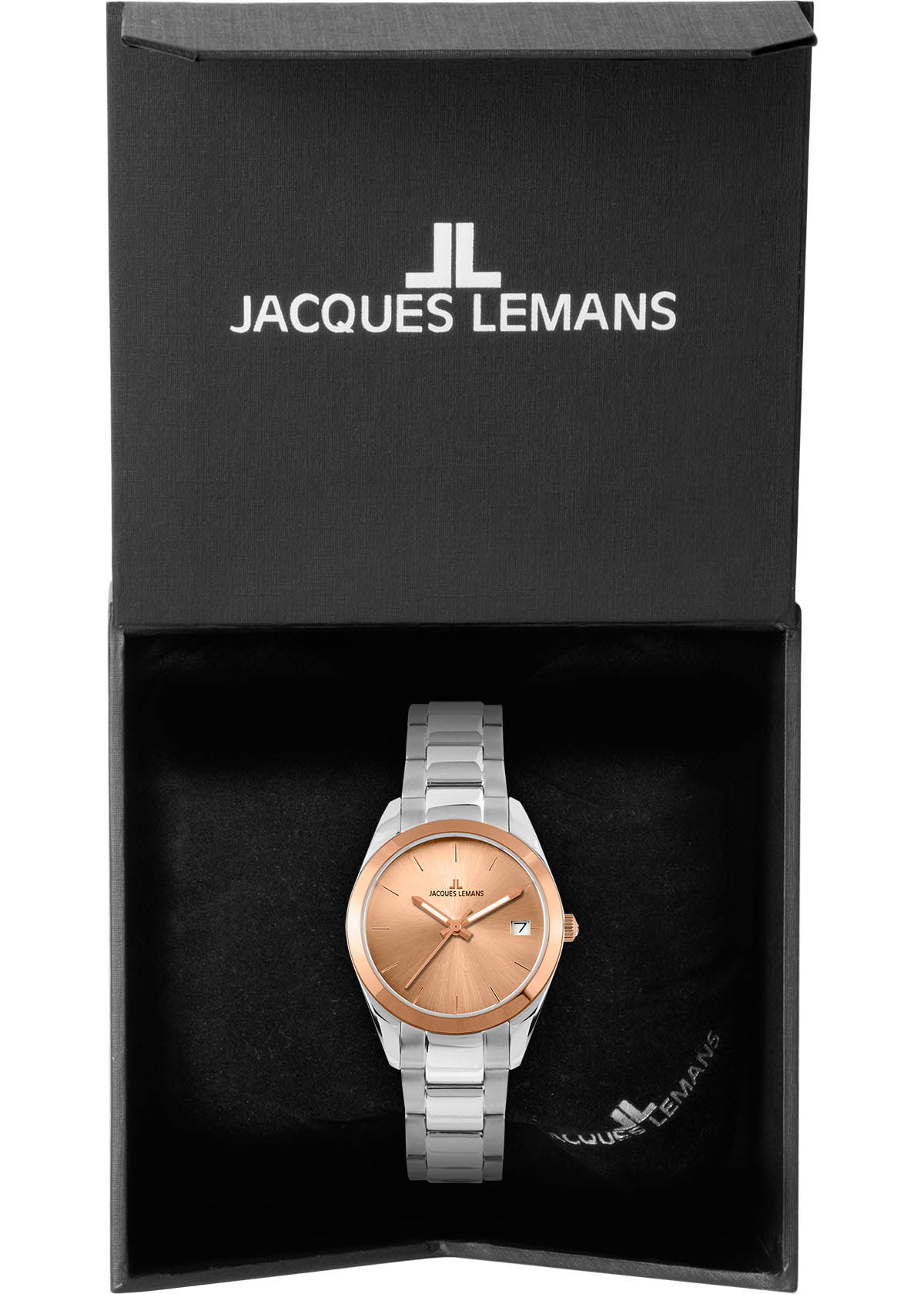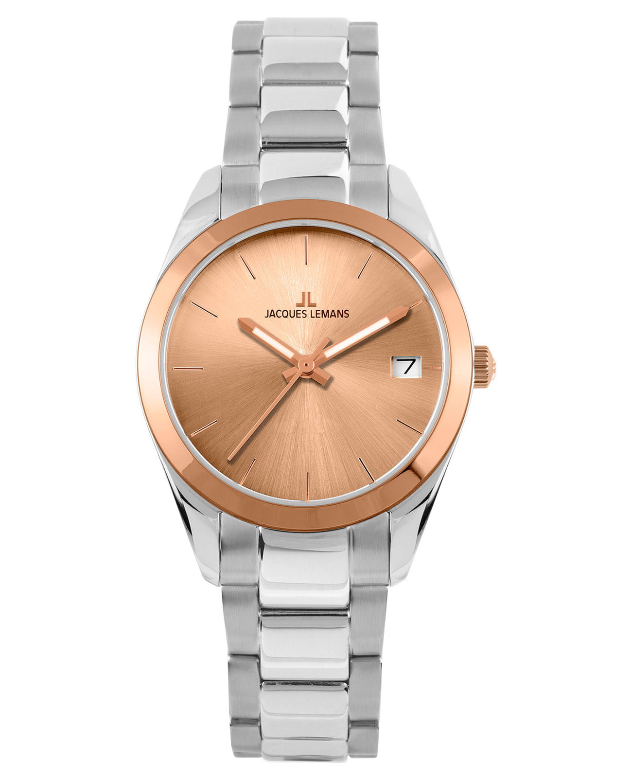 Женские часы Jacques Lemans Classic 1-1878F с минеральным стекломМинеральное стеклоМинеральное стекло представляет собой искусственно выращенный минерал кварца. Такое стекло отличается особой устойчивостью к повреждениям и царапинам. Уступает по некоторым качествам сапфировому стеклу., кварцевый механизм с высокой точностью. Корпус из нержавеющей стали. Неподвижный безельБезельВнешний ободок, закрепляющий стекло. В спортивных часах так называется поворотное кольцо с делениями на циферблате, выполняет роль таймера – замеряет отрезки времени на шкале. Неподвижный безель – элемент декора. Однонаправленно вращающийся безель на дайверских часах позволяет фиксировать моменты погружения и выныривания на поверхность. из нержавеющей стали с PVDPVDУльтратонкое покрытие наносится в технике вакуумного напыления, сочетает в себе нитрид титана особой прочности со слоем золота или оксида хрома. Несёт в себе декоративную или защитную функцию. покрытием. Стрелки с люминесцентным покрытиемЛюминесцентное покрытиеПозволяет считывать показания времени в темноте. Производители наносят на стрелки, часовые индексы, безель или поверхность циферблата светонакопительный состав, дающий холодное свечение.. Окошко даты расположено в позиции «3 часа». Класс водозащиты: 100 метров, позволит плавать, нырять и заниматься другими водными видами спорта. Браслет из нержавеющей стали на раскладной застёжкеРаскладная застёжкаТакой тип застёжки используется только на браслетах из металла. Она никогда не раскрывается полностью, происходит разделение на 2 и более частей. Раскладывающая застёжка снизит вероятность потери часов к минимуму..