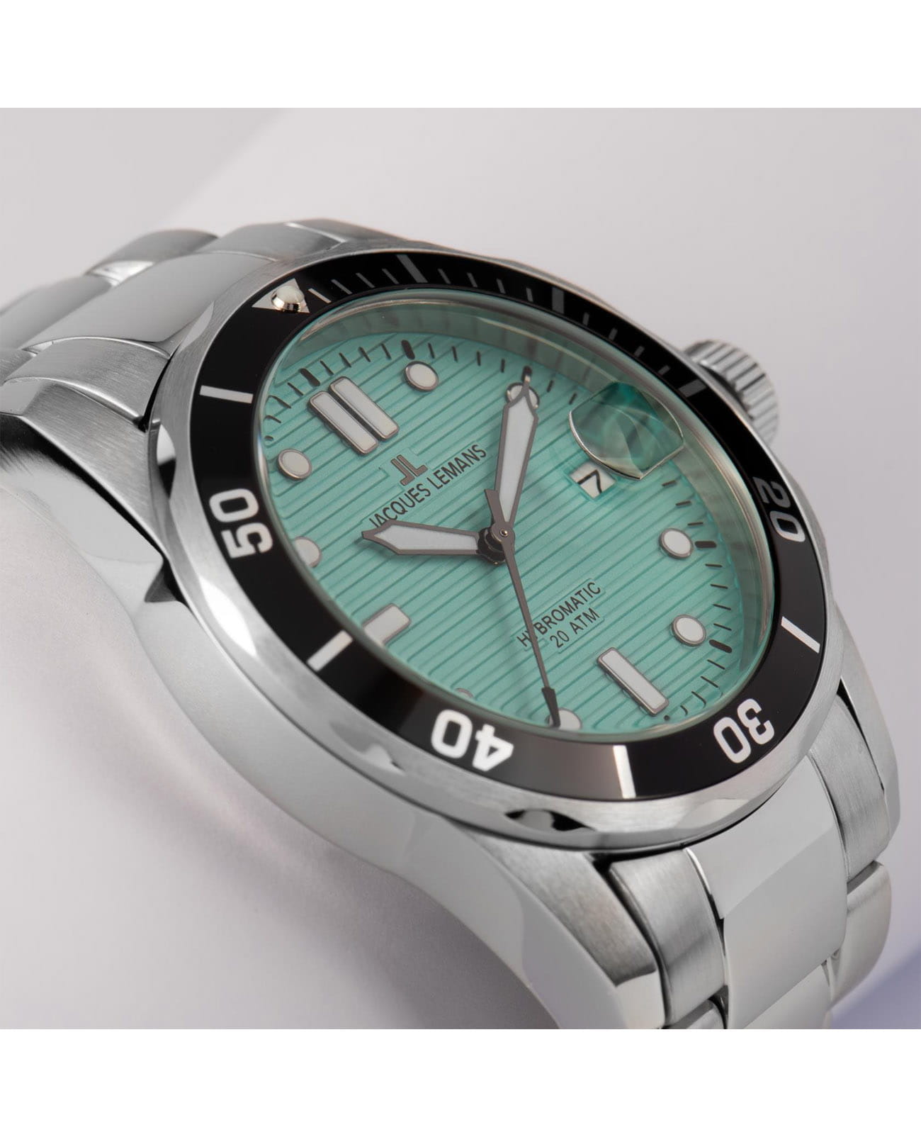 Мужские часы Jacques Lemans Hybromatic 1-2170i с минеральным стекломМинеральное стеклоМинеральное стекло представляет собой искусственно выращенный минерал кварца. Такое стекло отличается особой устойчивостью к повреждениям и царапинам. Уступает по некоторым качествам сапфировому стеклу., гибрид кварца и механики с автоподзаводом. Корпус выполенен из нержавеющей стали. Вращающийся безельБезельВнешний ободок, закрепляющий стекло. В спортивных часах так называется поворотное кольцо с делениями на циферблате, выполняет роль таймера – замеряет отрезки времени на шкале. Неподвижный безель – элемент декора. Однонаправленно вращающийся безель на дайверских часах позволяет фиксировать моменты погружения и выныривания на поверхность. из нержавеющей стали с PVDPVDУльтратонкое покрытие наносится в технике вакуумного напыления, сочетает в себе нитрид титана особой прочности со слоем золота или оксида хрома. Несёт в себе декоративную или защитную функцию. покрытием. Стрелки и метки с люминесцентным покрытиемЛюминесцентное покрытиеПозволяет считывать показания времени в темноте. Производители наносят на стрелки, часовые индексы, безель или поверхность циферблата светонакопительный состав, дающий холодное свечение.. Окошко даты находится в положении 3 часов. Класс водозащиты: 200 метров, позволит плавать, нырять и заниматься другими водными видами спорта. Стальной браслет на раскладной застёжкеРаскладная застёжкаТакой тип застёжки используется только на браслетах из металла. Она никогда не раскрывается полностью, происходит разделение на 2 и более частей. Раскладывающая застёжка снизит вероятность потери часов к минимуму..
