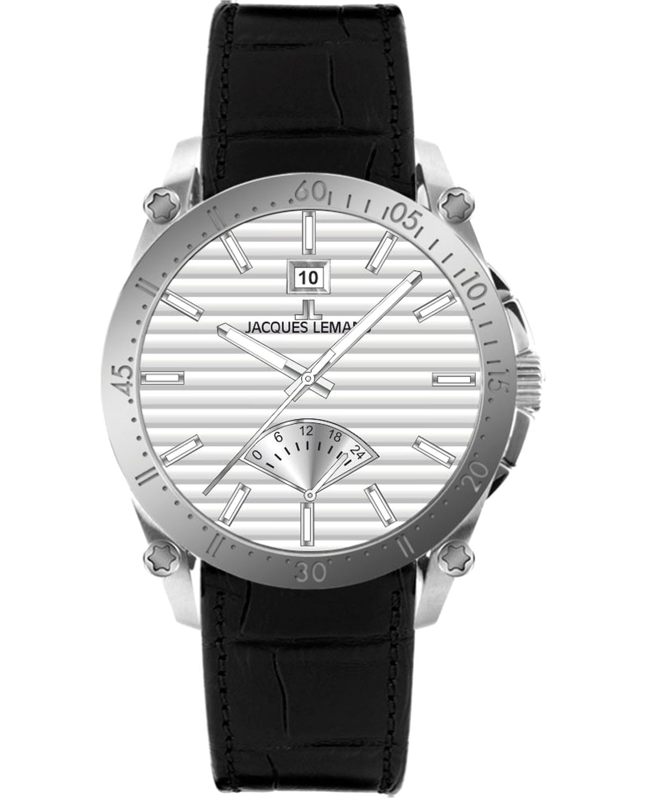Мужские кварцевые часы Jacques Lemans 1-2202F – лаконичная красота и изысканная элегантность. Оригинальная модель с классическим оформлением станет превосходным завершением образа, наделив его индивидуальным характером. Корпус выполнен из нержавеющей стали, диаметром 44 мм, что обеспечивает долговечность и утончённый внешний вид. Минеральное стеклоМинеральное стеклоМинеральное стекло представляет собой искусственно выращенный минерал кварца. Такое стекло отличается особой устойчивостью к повреждениям и царапинам. Уступает по некоторым качествам сапфировому стеклу. с сапфировым напылением защищает циферблат от царапин. Кожаный ремешок на стандартной застёжке обеспечивает комфортное ношение. На неподвижный безельБезельВнешний ободок, закрепляющий стекло. В спортивных часах так называется поворотное кольцо с делениями на циферблате, выполняет роль таймера – замеряет отрезки времени на шкале. Неподвижный безель – элемент декора. Однонаправленно вращающийся безель на дайверских часах позволяет фиксировать моменты погружения и выныривания на поверхность. нанесена минутная шкала. Водозащита 100 метров позволит плавать, нырять и заниматься другими водными видами спорта. Стрелки и метки с люминесцентным покрытиемЛюминесцентное покрытиеПозволяет считывать показания времени в темноте. Производители наносят на стрелки, часовые индексы, безель или поверхность циферблата светонакопительный состав, дающий холодное свечение. позволяющие легко определять время даже в темноте. Окошко даты находится в положении 12 часов. Индикатор 24-х часов вынесен на отдельный циферблат. Рифленая заводная головка с защитой. Это аксессуар для мужчины, который ценит классический стиль и функциональность.