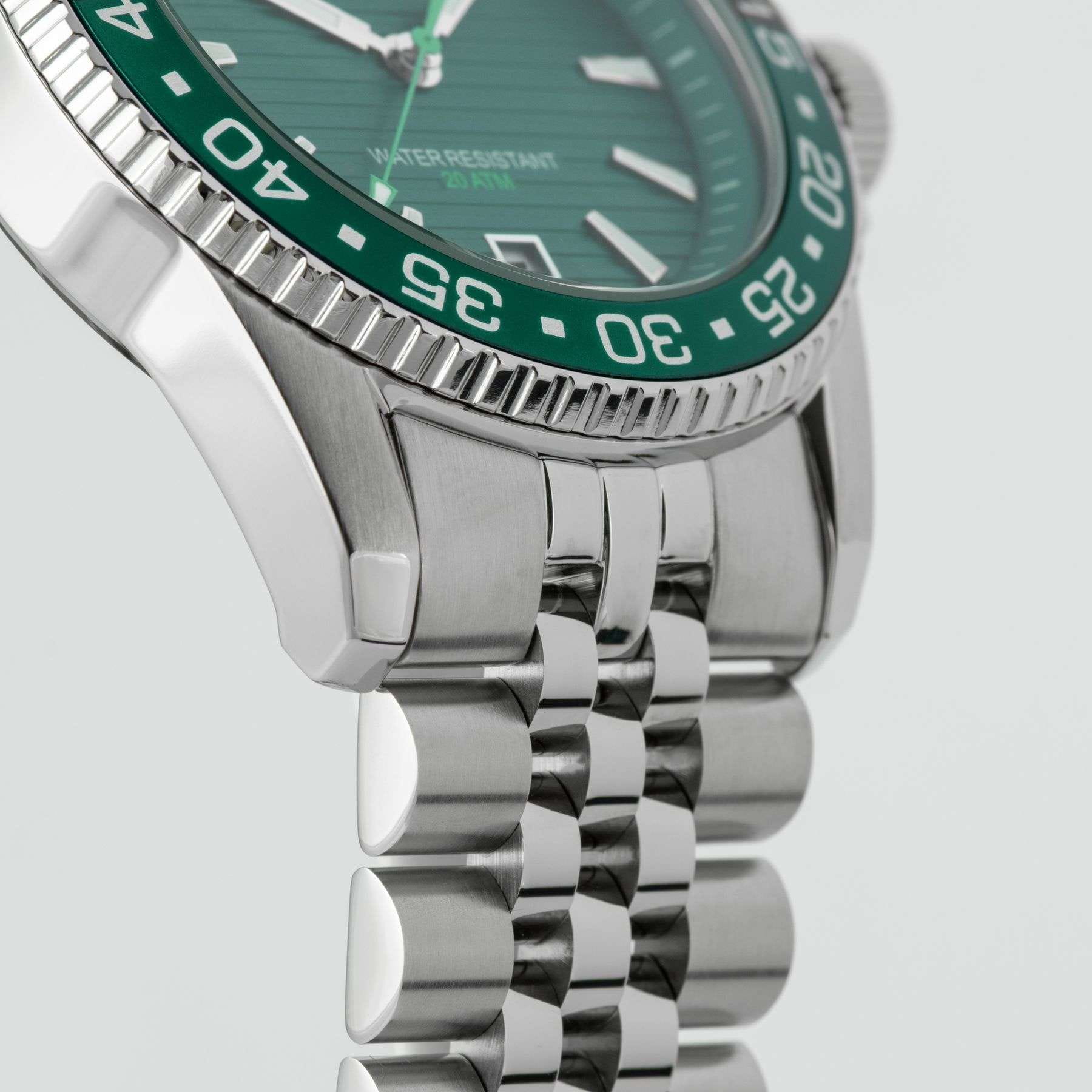 Мужские спортивные часы Jacques Lemans Liverpool Diver 1-2205J представляют собой стильный аксессуар, отражающий идеальное сочетание современного дизайна, надёжности и функциональности. Корпус из нержавеющей стали диаметром 41 мм идеально сбалансирован и элегантен. Ударопрочное минеральное стеклоМинеральное стеклоМинеральное стекло представляет собой искусственно выращенный минерал кварца. Такое стекло отличается особой устойчивостью к повреждениям и царапинам. Уступает по некоторым качествам сапфировому стеклу. Crystex защищает циферблат от царапин. Широкий безельБезельВнешний ободок, закрепляющий стекло. В спортивных часах так называется поворотное кольцо с делениями на циферблате, выполняет роль таймера – замеряет отрезки времени на шкале. Неподвижный безель – элемент декора. Однонаправленно вращающийся безель на дайверских часах позволяет фиксировать моменты погружения и выныривания на поверхность. с PVD-покрытиемPVDУльтратонкое покрытие наносится в технике вакуумного напыления, сочетает в себе нитрид титана особой прочности со слоем золота или оксида хрома. Несёт в себе декоративную или защитную функцию., на который вынесена дополнительная индикация секунд. Стальной браслет на раскладной застёжке с фиксаторомРаскладная застёжкаТакой тип застёжки используется только на браслетах из металла. Она никогда не раскрывается полностью, происходит разделение на 2 и более частей. Раскладывающая застёжка снизит вероятность потери часов к минимуму. обеспечивает комфортное ношение. Водозащита 200 метров позволит плавать, нырять и заниматься другими водными видами спорта. Стрелки и метки с люминесцентным покрытиемЛюминесцентное покрытиеПозволяет считывать показания времени в темноте. Производители наносят на стрелки, часовые индексы, безель или поверхность циферблата светонакопительный состав, дающий холодное свечение. позволяющие легко определять время даже в темноте. Окошко даты находится в положении 6 часов. Это аксессуар для мужчины, который ценит классический стиль и функциональность.
