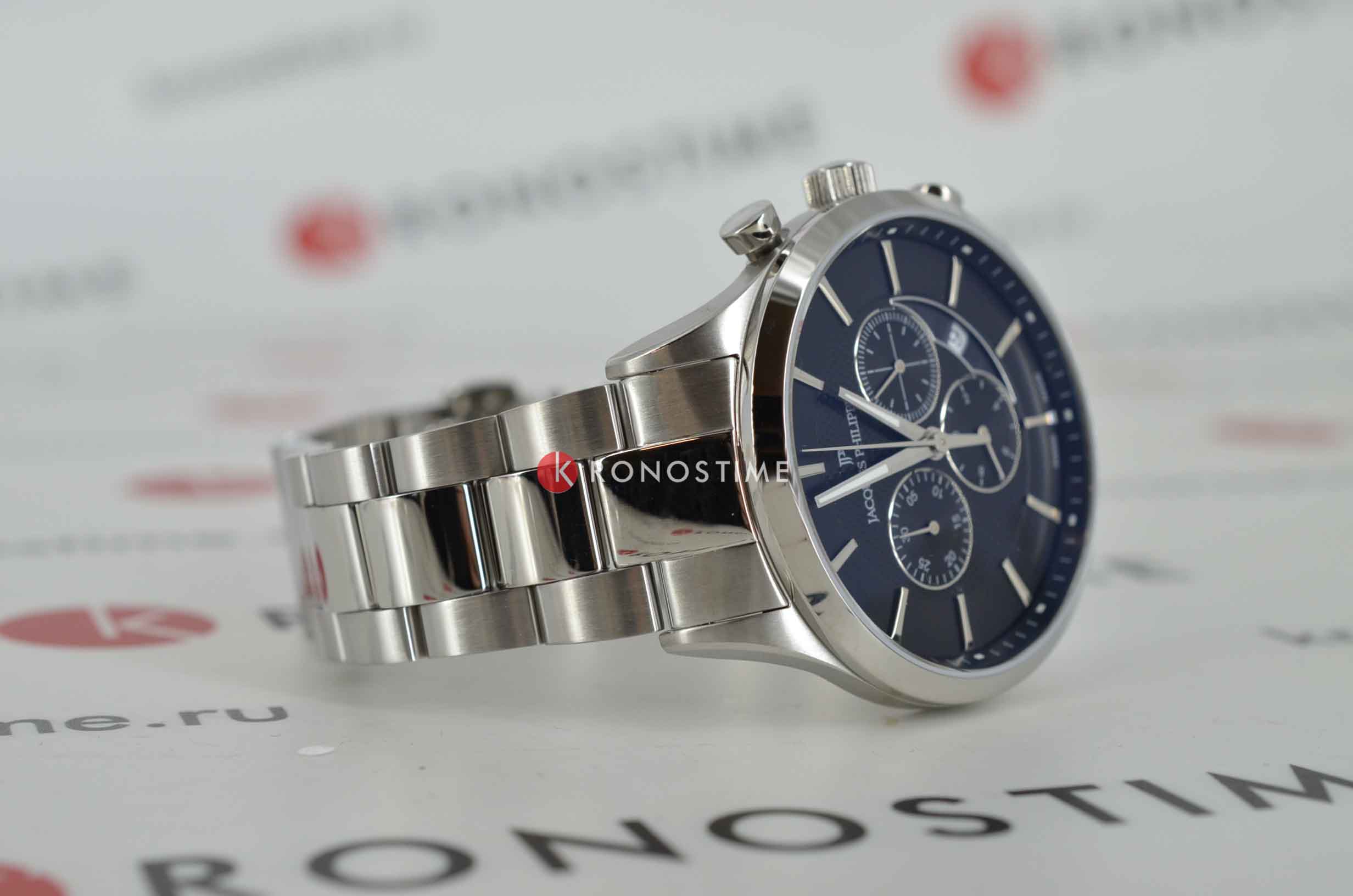 Швейцарские мужские часы-хронографХронографФункция позволяет измерять отрезки времени с особой точностью: часы, минуты, секунды. Верным признаком хронографа является наличие на циферблате 3 дополнительных окошек-счётчиков. Jacques Philippe Gallant JPQGC031316, кварцевый механизм с высокой точностью. Сапфировое стеклоСапфировое стеклоПрочный и надёжный материал из кристалла сапфира синтетического происхождения, характеризующийся особой твёрдостью и устойчивостью к царапинам и повреждениям. устойчивое к появлению царапин, обладающее высокой прозрачностью. Корпус часов изготовлен из нержавеющей стали. На циферблате три дополнительных индикатора. Стрелки с люминесцентным покрытиемЛюминесцентное покрытиеПозволяет считывать показания времени в темноте. Производители наносят на стрелки, часовые индексы, безель или поверхность циферблата светонакопительный состав, дающий холодное свечение.. Окошко даты находится между 4 и 5 часами. Класс водозащиты: 50 метров, позволит защитить корпус от случайных брызг или капель дождя. Стальной браслет на застёжке «бабочка» с кнопкамиЗастёжка "бабочка"Такой вид застёжки дополняется предохранителями, помогающими избежать случайного раскрытия браслета. Обладают изящным исполнением. .