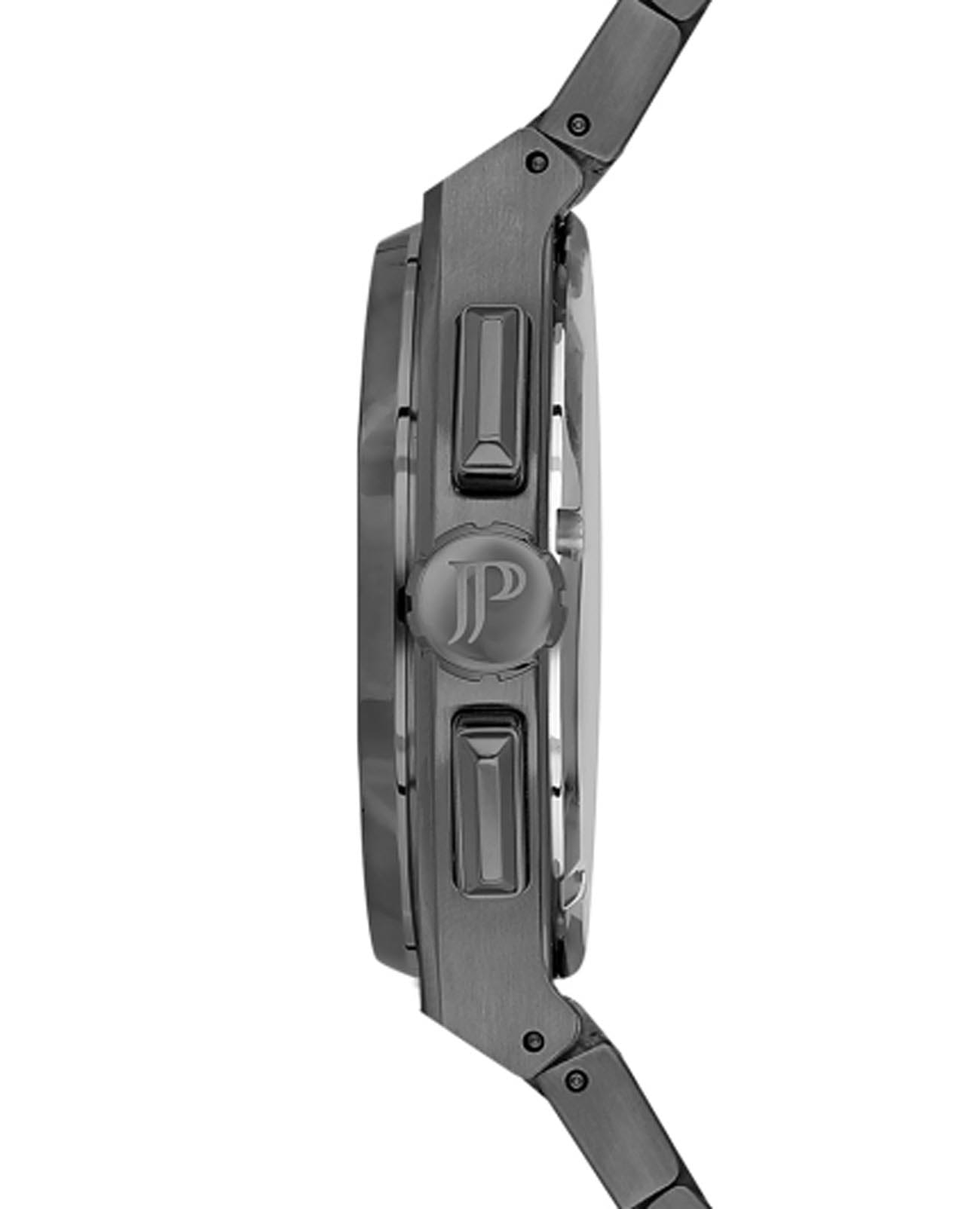 Швейцарские мужские часы-хронографХронографФункция позволяет измерять отрезки времени с особой точностью: часы, минуты, секунды. Верным признаком хронографа является наличие на циферблате 3 дополнительных окошек-счётчиков. с секундомеромСекундомерСекундоме́р — прибор, способный измерять интервалы времени с точностью до долей секунды. Jacques Philippe Aurora JPQGC4183X7, кварцевый механизм с высокой точностью. Сапфировое стеклоСапфировое стеклоПрочный и надёжный материал из кристалла сапфира синтетического происхождения, характеризующийся особой твёрдостью и устойчивостью к царапинам и повреждениям. устойчивое к появлению царапин, обладающее высокой прозрачностью. Корпус часов изготовлен из нержавеющей стали с IP-покрытиемIP-покрытиеМетод ионного напыления. Демонстрирует повышенную устойчивость к истиранию, окислению и химическим веществам. Под воздействием высокого давления и температуры около 1500°C молекулы металла надёжно соединяются с частицами корпуса часов.. На циферблате три дополнительных индикатора. Окошко даты находится в положении 4 часа. Стрелки с люминесцентным покрытиемЛюминесцентное покрытиеПозволяет считывать показания времени в темноте. Производители наносят на стрелки, часовые индексы, безель или поверхность циферблата светонакопительный состав, дающий холодное свечение.. Класс водозащиты: 50 метров, позволит защитить корпус от случайных брызг или капель дождя. Стальной браслет с IP-покрытиемIP-покрытиеМетод ионного напыления. Демонстрирует повышенную устойчивость к истиранию, окислению и химическим веществам. Под воздействием высокого давления и температуры около 1500°C молекулы металла надёжно соединяются с частицами корпуса часов. на застёжке «бабочка» с кнопкамиЗастёжка "бабочка"Такой вид застёжки дополняется предохранителями, помогающими избежать случайного раскрытия браслета. Обладают изящным исполнением. .
