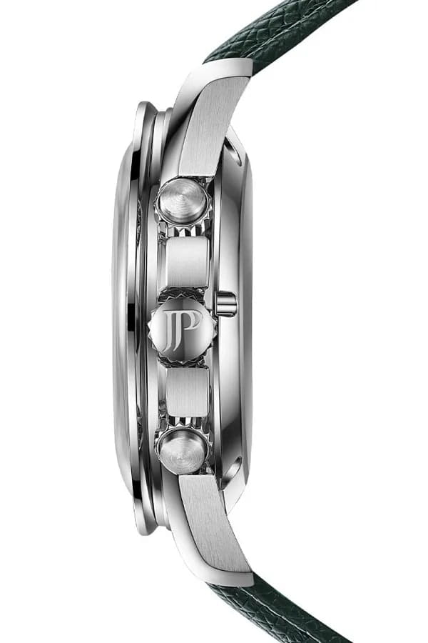 Часы Jacques Philippe JPQGC43115X из коллекции Nobilis — элегантные мужские часы, сочетающие в себе швейцарское качество и современный дизайн. Корпус диаметром 41 мм выполнен из нержавеющей стали, а зеленый циферблат защищён сапфировым стекломСапфировое стеклоПрочный и надёжный материал из кристалла сапфира синтетического происхождения, характеризующийся особой твёрдостью и устойчивостью к царапинам и повреждениям.. БезельБезельВнешний ободок, закрепляющий стекло. В спортивных часах так называется поворотное кольцо с делениями на циферблате, выполняет роль таймера – замеряет отрезки времени на шкале. Неподвижный безель – элемент декора. Однонаправленно вращающийся безель на дайверских часах позволяет фиксировать моменты погружения и выныривания на поверхность. с PVD-покрытиемPVDУльтратонкое покрытие наносится в технике вакуумного напыления, сочетает в себе нитрид титана особой прочности со слоем золота или оксида хрома. Несёт в себе декоративную или защитную функцию..