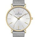 Швейцарские мужские часы Jacques Philippe Base JPQGS077226YG, кварцевый механизм с высокой точностью. Сапфировое стеклоСапфировое стеклоПрочный и надёжный материал из кристалла сапфира синтетического происхождения, характеризующийся особой твёрдостью и устойчивостью к царапинам и повреждениям. устойчивое к появлению царапин, обладающее высокой прозрачностью. Корпус часов изготовлен из нержавеющей стали. Класс водозащиты: 30 метров, позволит защитить корпус от случайных брызг или капель дождя. Стальной браслет на раскладном замкеРаскладной замокДанный вариант застежки используется только на часах с металлическим браслетом. Отличительная особенность такого крепления в том, что длина браслета становится универсальной и вы можете самостоятельно отрегулировать нужный вам размер – застежка просто двигается по браслету часов.. БезельБезельВнешний ободок, закрепляющий стекло. В спортивных часах так называется поворотное кольцо с делениями на циферблате, выполняет роль таймера – замеряет отрезки времени на шкале. Неподвижный безель – элемент декора. Однонаправленно вращающийся безель на дайверских часах позволяет фиксировать моменты погружения и выныривания на поверхность. с PVD-покрытиемPVDУльтратонкое покрытие наносится в технике вакуумного напыления, сочетает в себе нитрид титана особой прочности со слоем золота или оксида хрома. Несёт в себе декоративную или защитную функцию..