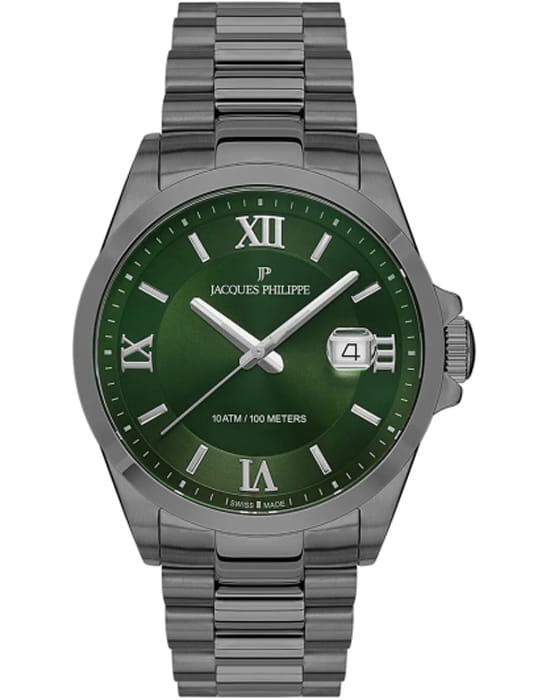 Швейцарские мужские наручные часы Jacques Philippe Infinitum JPQGS3383X7V2. Надежный кварцевый механизм гарантирует высокую точность отображения времени, позволяя вам всегда быть пунктуальным. Сапфировое стеклоСапфировое стеклоПрочный и надёжный материал из кристалла сапфира синтетического происхождения, характеризующийся особой твёрдостью и устойчивостью к царапинам и повреждениям. с антибликовым покрытиемАнтибликовое покрытиеСлой оксида металла в 0,13-0,3 микрон, благодаря которому стекло часов не бликует и не отражает свет. Антибликовое покрытие уменьшает отражение света в 10 раз, обеспечивая отличную читаемость показателей циферблата. устойчивое к появлению царапин, обладающее высокой прозрачностью и обеспечивает отличную читаемость информации при любом освещении. Корпус из нержавеющей стали 316L с IP-покрытиемIP-покрытиеМетод ионного напыления. Демонстрирует повышенную устойчивость к истиранию, окислению и химическим веществам. Под воздействием высокого давления и температуры около 1500°C молекулы металла надёжно соединяются с частицами корпуса часов. черного цвета, диаметром 40 мм обеспечивает долговечность и устойчивость к внешним воздействиям. Стрелки и метки с люминесцентным покрытиемЛюминесцентное покрытиеПозволяет считывать показания времени в темноте. Производители наносят на стрелки, часовые индексы, безель или поверхность циферблата светонакопительный состав, дающий холодное свечение.. Окошко даты находится в положении 3 часа. Класс водозащиты: 100 метров позволит плавать, нырять и заниматься другими водными видами спорта. Стальной браслет с IP-покрытиемIP-покрытиеМетод ионного напыления. Демонстрирует повышенную устойчивость к истиранию, окислению и химическим веществам. Под воздействием высокого давления и температуры около 1500°C молекулы металла надёжно соединяются с частицами корпуса часов. на застёжке «бабочка» с кнопкамиЗастёжка "бабочка"Такой вид застёжки дополняется предохранителями, помогающими избежать случайного раскрытия браслета. Обладают изящным исполнением. обеспечивает комфортное ношение. Часы подходят для повседневного ношения, деловых встреч и особых случаев, добавляя вашему образу завершенности и элегантности.