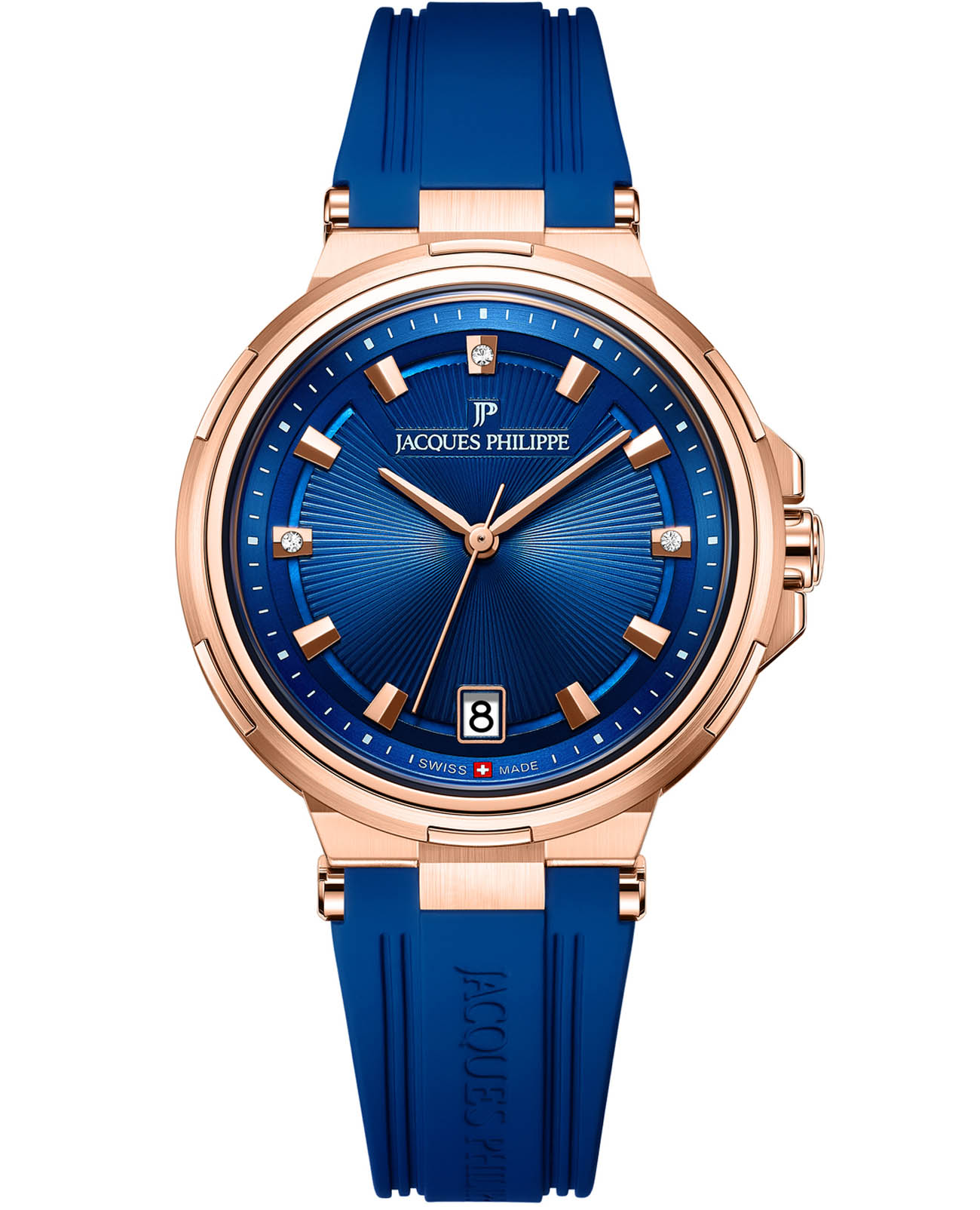 Часы Jacques Philippe JPQLS453432 из коллекции Novellus — элегантные женские часы, сочетающие швейцарское качество и современный дизайн. Корпус диаметром 36 мм выполнен из нержавеющей стали с PVD-покрытиемPVDУльтратонкое покрытие наносится в технике вакуумного напыления, сочетает в себе нитрид титана особой прочности со слоем золота или оксида хрома. Несёт в себе декоративную или защитную функцию. цвета золота, а синий циферблат защищён сапфировым стекломСапфировое стеклоПрочный и надёжный материал из кристалла сапфира синтетического происхождения, характеризующийся особой твёрдостью и устойчивостью к царапинам и повреждениям.. Циферблат инкрустирован кристаллами. Внутри установлен швейцарский кварцевый механизм, обеспечивающий высокую точность хода. Водозащита 50 метров (5 ATM) защищает часы от брызг и дождя. Ремень из силикона обеспечивает комфортное ношение и надёжную фиксацию на запястье. Эти часы идеально подойдут для тех, кто ценит сочетание элегантного дизайна и функциональности.