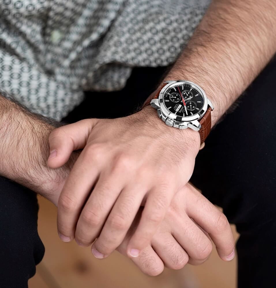 Jaguar Le Chronographe J975/4  — это мужские часы, сочетающие классический дизайн с современными функциями. Корпус диаметром 45 мм выполнен из нержавеющей стали, что обеспечивает прочность и элегантный внешний вид. Сапфировое стеклоСапфировое стеклоПрочный и надёжный материал из кристалла сапфира синтетического происхождения, характеризующийся особой твёрдостью и устойчивостью к царапинам и повреждениям. защищает циферблат от царапин и повреждений. Изысканный циферблат со стильными индексами и стрелками подчёркивает утончённый стиль. Часы с хронографом. Часы оснащены стильным кожаным ремешком и классической застежкой, идеальной системой крепления для кожаного ремешка, которая гарантирует, что часы будут надежно оставаться на месте в любое время. Водозащита до 10 ATM (100 метров) делает часы подходящими для плавания и занятий водными видами спорта. Jaguar J975/4 — идеальный выбор для мужчин, которые ценят швейцарское качество и современные технологии.