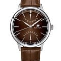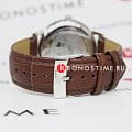 Мужские наручные часы Космос Космопорт K 058.12.32 — это сочетание традиций часового искусства 60-70-х годов и футуристического дизайна, вдохновленного космическими исследованиями. Они не только служат напоминанием о прошлом, но и побуждают задуматься о будущем, позволяя наслаждаться качеством и смыслом, вложенными в каждую деталь. Полированный корпус часов выполнен в виде силуэта летающей тарелки благодаря выпуклым формам стекла и нижней части корпуса. Стальные ушки, которые напоминают опоры летающей тарелки, завершает общий образ. На задней крышке часов выгравирован фантазийный сюжет – космическая станция будущего. Циферблат коричневого цвета выполнен в ретро стиле с закруглёнными краями, что требует применения сложной технологии производства, характерной для часов прошлых лет. Кончик секундной стрелки повторяет эту форму, а на выпуклом градиентном циферблате выполнена шлифовка, напоминающая солнечные лучи. Индексы, изготовленные вручную и закрепленные на двух штифтах, добавляют изысканности. Также присутствуют ретроградные индикаторы даты и второго времени (24 часа), которые возвращаются в исходное положение одним движением.  Люминесцентное покрытиеЛюминесцентное покрытиеПозволяет считывать показания времени в темноте. Производители наносят на стрелки, часовые индексы, безель или поверхность циферблата светонакопительный состав, дающий холодное свечение. на часовой и минутной стрелках, а также на стрелках ретроградных индикаторов и окантовке циферблата создает эффект светящегося ореола в темноте. Форма минерального стеклаМинеральное стеклоМинеральное стекло представляет собой искусственно выращенный минерал кварца. Такое стекло отличается особой устойчивостью к повреждениям и царапинам. Уступает по некоторым качествам сапфировому стеклу., представляющего собой двояковыпуклую конструкцию, тщательно проработана. Такое стекло не искажает изображение на циферблате, потому что внутренняя поверхность остаётся плоской, создавая эффект линзы. Производственный процесс для достижения двух параллельно изогнутых поверхностей очень сложен, и требуется высокая точность, чтобы избежать повреждения стекла. Ремешок из коричневой натуральной кожи оснащён креплениями, которые позволяют легко снимать и надевать его без использования дополнительных инструментов. Заводная головка, застежка и ремешок украшены фирменным логотипом, что подчеркивает индивидуальность и стиль этих часов.