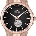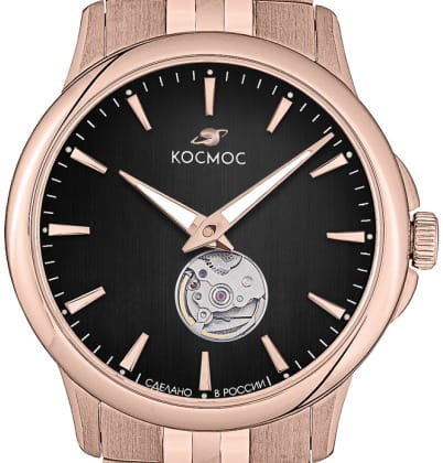 Мужские наручные часы Космос Телескоп K 304.40.31 — это уникальная лимитированная серия под названием Телескоп, посвящена аппарату приоткрывающего взгляду бескрайние дали космического пространства. Апертура открытого баланса модели по форме напоминает круглую линзу телескопа. Сквозь это окошко, расположенное на черном циферблате, также можно увидеть много интересного: ту самую систему «баланс-спираль» автоматического механизма, которая отвечает за точность хода. Корпус часов выполнен из нержавеющей стали с PVDPVDУльтратонкое покрытие наносится в технике вакуумного напыления, сочетает в себе нитрид титана особой прочности со слоем золота или оксида хрома. Несёт в себе декоративную или защитную функцию. покрытием, классической круглой формы и достаточно тонкий для механических моделей. Это стало возможным благодаря использованию механизма Miyota, калибр 9029, с высотой всего 3.9 мм. Циферблат декорирован вертикальной текстурой в ретро-стиле, по которой движутся крупные часовая и минутная стрелки, имеющие люминесцентное покрытиеЛюминесцентное покрытиеПозволяет считывать показания времени в темноте. Производители наносят на стрелки, часовые индексы, безель или поверхность циферблата светонакопительный состав, дающий холодное свечение., позволяющее определять время даже в темноте. Циферблат защищен прочным сапфировым стеклом с антибликовым покрытиемСапфировое стеклоПрочный и надёжный материал из кристалла сапфира синтетического происхождения, характеризующийся особой твёрдостью и устойчивостью к царапинам и повреждениям., обеспечивающим отличную читаемость показаний в любых условиях. Прозрачная задняя крышка, закрепленная на четырех винтах, демонстрирует механизм и содержит выгравированный индивидуальный номер экземпляра хх/50, отражающий лимитированный тираж всего в 50 штук. Браслет изготовлен из нержавеющей стали с PVDPVDУльтратонкое покрытие наносится в технике вакуумного напыления, сочетает в себе нитрид титана особой прочности со слоем золота или оксида хрома. Несёт в себе декоративную или защитную функцию. покрытием и оснащен удобной застёжкой «бабочка» с кнопкамиЗастёжка "бабочка"Такой вид застёжки дополняется предохранителями, помогающими избежать случайного раскрытия браслета. Обладают изящным исполнением. , которая сводит к минимуму вероятность потери. Модель Телескоп сочетает классический дизайн и универсальность, прекрасно подходя как к деловому костюму, так и к более повседневным образам.