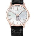 Мужские наручные часы Космос Телескоп K 304.41.33 — это уникальная лимитированная серия под названием Телескоп, посвящена аппарату приоткрывающего взгляду бескрайние дали космического пространства. Апертура открытого баланса модели по форме напоминает круглую линзу телескопа. Сквозь это окошко, расположенное на черном циферблате, также можно увидеть много интересного: ту самую систему «баланс-спираль» автоматического механизма, которая отвечает за точность хода. Корпус часов выполнен из нержавеющей стали с PVDPVDУльтратонкое покрытие наносится в технике вакуумного напыления, сочетает в себе нитрид титана особой прочности со слоем золота или оксида хрома. Несёт в себе декоративную или защитную функцию. покрытием, классической круглой формы и достаточно тонкий для механических моделей. Это стало возможным благодаря использованию механизма Miyota, калибр 9029, с высотой всего 3.9 мм. Циферблат декорирован вертикальной текстурой в ретро-стиле, по которой движутся крупные часовая и минутная стрелки, имеющие люминесцентное покрытиеЛюминесцентное покрытиеПозволяет считывать показания времени в темноте. Производители наносят на стрелки, часовые индексы, безель или поверхность циферблата светонакопительный состав, дающий холодное свечение., позволяющее определять время даже в темноте. Циферблат защищен прочным сапфировым стеклом с антибликовым покрытиемСапфировое стеклоПрочный и надёжный материал из кристалла сапфира синтетического происхождения, характеризующийся особой твёрдостью и устойчивостью к царапинам и повреждениям., обеспечивающим отличную читаемость показаний в любых условиях. Прозрачная задняя крышка, закрепленная на четырех винтах, демонстрирует механизм и содержит выгравированный индивидуальный номер экземпляра хх/50, отражающий лимитированный тираж всего в 50 штук. Ремешок часов сделан из натуральной кожи черного цвета и оснащен удобной застёжкой «бабочка» с кнопкамиЗастёжка "бабочка"Такой вид застёжки дополняется предохранителями, помогающими избежать случайного раскрытия браслета. Обладают изящным исполнением. , которая сводит к минимуму вероятность потери. Модель Телескоп сочетает классический дизайн и универсальность, прекрасно подходя как к деловому костюму, так и к более повседневным образам.