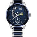 Мужские швейцарские часы L'Duchen Aerostat D 237.30.BP, кварцевый механизм с высокой точностью. Сапфировое стеклоСапфировое стеклоПрочный и надёжный материал из кристалла сапфира синтетического происхождения, характеризующийся особой твёрдостью и устойчивостью к царапинам и повреждениям. устойчивое к появлению царапин, обладающее высокой прозрачностью. Корпус часов выполнен из нержавеющей стали. БезельБезельВнешний ободок, закрепляющий стекло. В спортивных часах так называется поворотное кольцо с делениями на циферблате, выполняет роль таймера – замеряет отрезки времени на шкале. Неподвижный безель – элемент декора. Однонаправленно вращающийся безель на дайверских часах позволяет фиксировать моменты погружения и выныривания на поверхность. из керамики. Стрелки с люминесцентным покрытиемЛюминесцентное покрытиеПозволяет считывать показания времени в темноте. Производители наносят на стрелки, часовые индексы, безель или поверхность циферблата светонакопительный состав, дающий холодное свечение.. Класс водозащиты: 100 метров, позволит плавать, нырять и заниматься другими водными видами спорта. Стальной браслет с керамическими вставками на застёжке «бабочка» с кнопкамиЗастёжка "бабочка"Такой вид застёжки дополняется предохранителями, помогающими избежать случайного раскрытия браслета. Обладают изящным исполнением. .