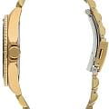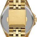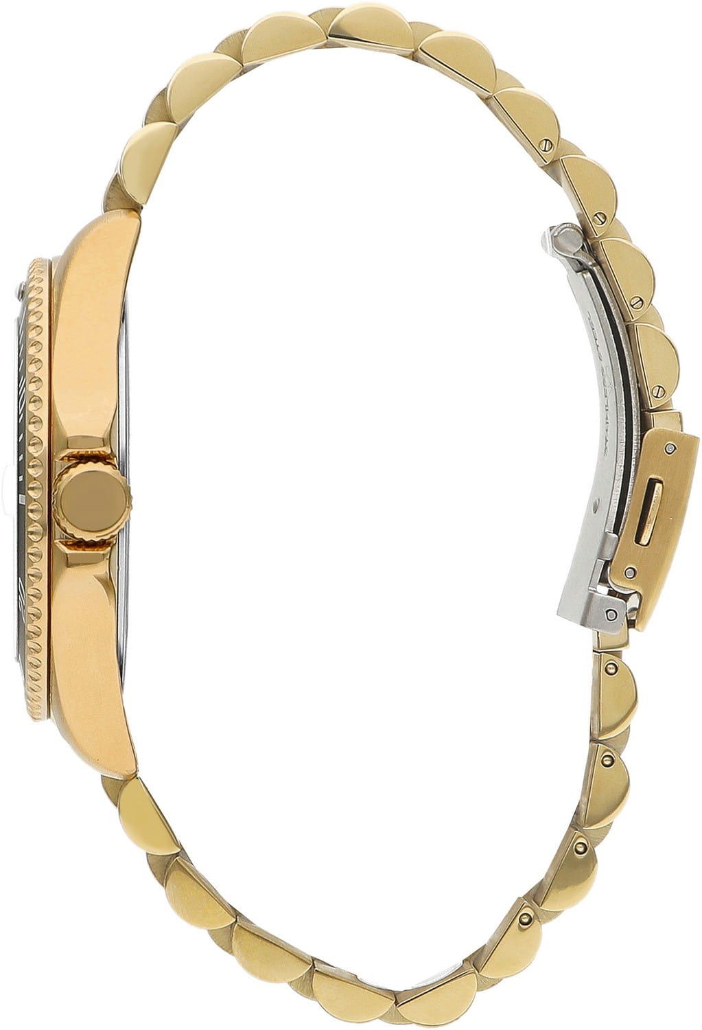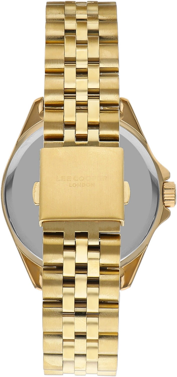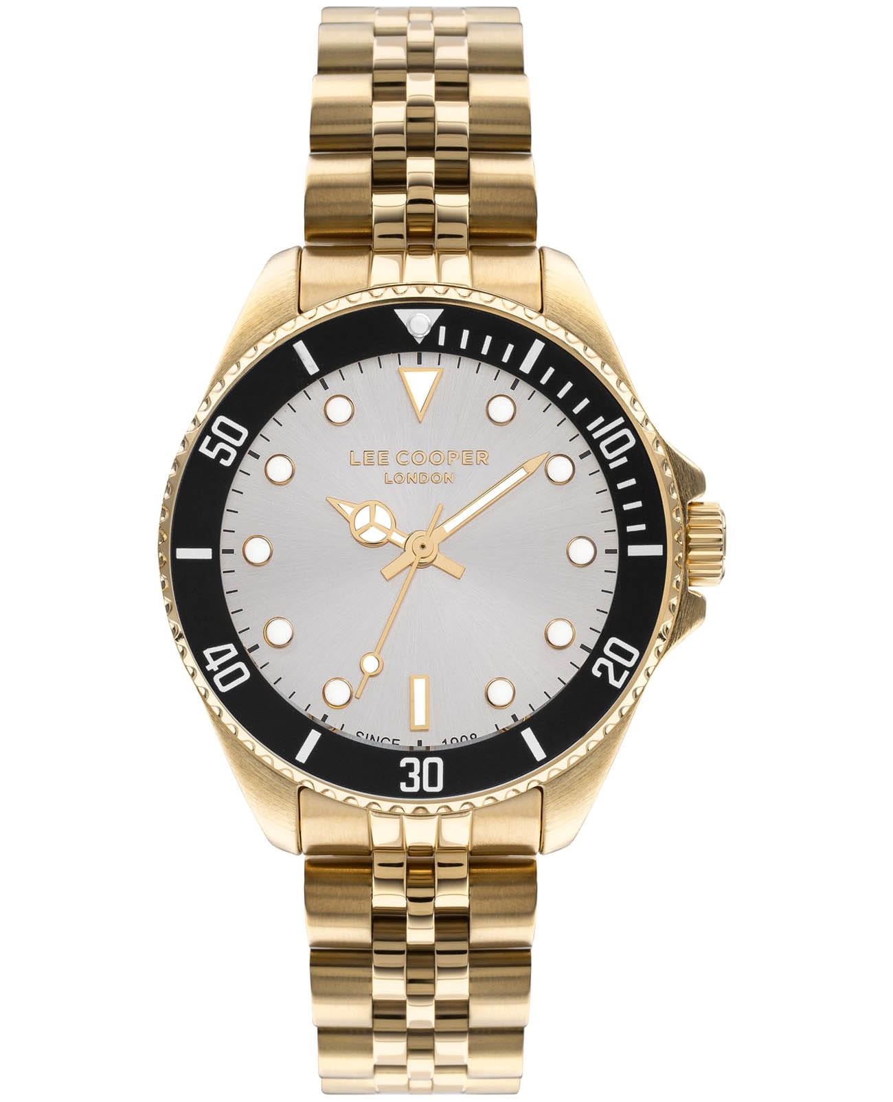 Женские часы Lee Cooper LC07593.130 — это стильное сочетание элегантности и современного дизайна. Круглый корпус диаметром 36 мм выполнен из суперметалла с IP-покрытиемIP-покрытиеМетод ионного напыления. Демонстрирует повышенную устойчивость к истиранию, окислению и химическим веществам. Под воздействием высокого давления и температуры около 1500°C молекулы металла надёжно соединяются с частицами корпуса часов. золотистого цвета. Циферблат защищен минеральным стекломМинеральное стеклоМинеральное стекло представляет собой искусственно выращенный минерал кварца. Такое стекло отличается особой устойчивостью к повреждениям и царапинам. Уступает по некоторым качествам сапфировому стеклу., обеспечивающий устойчивость к царапинам. Поворотный безельБезельВнешний ободок, закрепляющий стекло. В спортивных часах так называется поворотное кольцо с делениями на циферблате, выполняет роль таймера – замеряет отрезки времени на шкале. Неподвижный безель – элемент декора. Однонаправленно вращающийся безель на дайверских часах позволяет фиксировать моменты погружения и выныривания на поверхность. с IP-покрытиемIP-покрытиеМетод ионного напыления. Демонстрирует повышенную устойчивость к истиранию, окислению и химическим веществам. Под воздействием высокого давления и температуры около 1500°C молекулы металла надёжно соединяются с частицами корпуса часов. черного цвета. Центральные часовая, минутная и секундная стрелки. Часы оснащены надежным кварцевым механизмом, источник питания - батарейка. Металлический браслет на раскладной застёжкеРаскладная застёжкаТакой тип застёжки используется только на браслетах из металла. Она никогда не раскрывается полностью, происходит разделение на 2 и более частей. Раскладывающая застёжка снизит вероятность потери часов к минимуму. гарантирует комфортную посадку на запястье. Водозащита 30 метров защищает модель от случайных брызг и дождя. Стрелки с люминесцентным покрытиемЛюминесцентное покрытиеПозволяет считывать показания времени в темноте. Производители наносят на стрелки, часовые индексы, безель или поверхность циферблата светонакопительный состав, дающий холодное свечение. позволяющие легко определять время даже в темноте. Lee Cooper — отличный выбор для тех, кто ценит утонченность и качество.