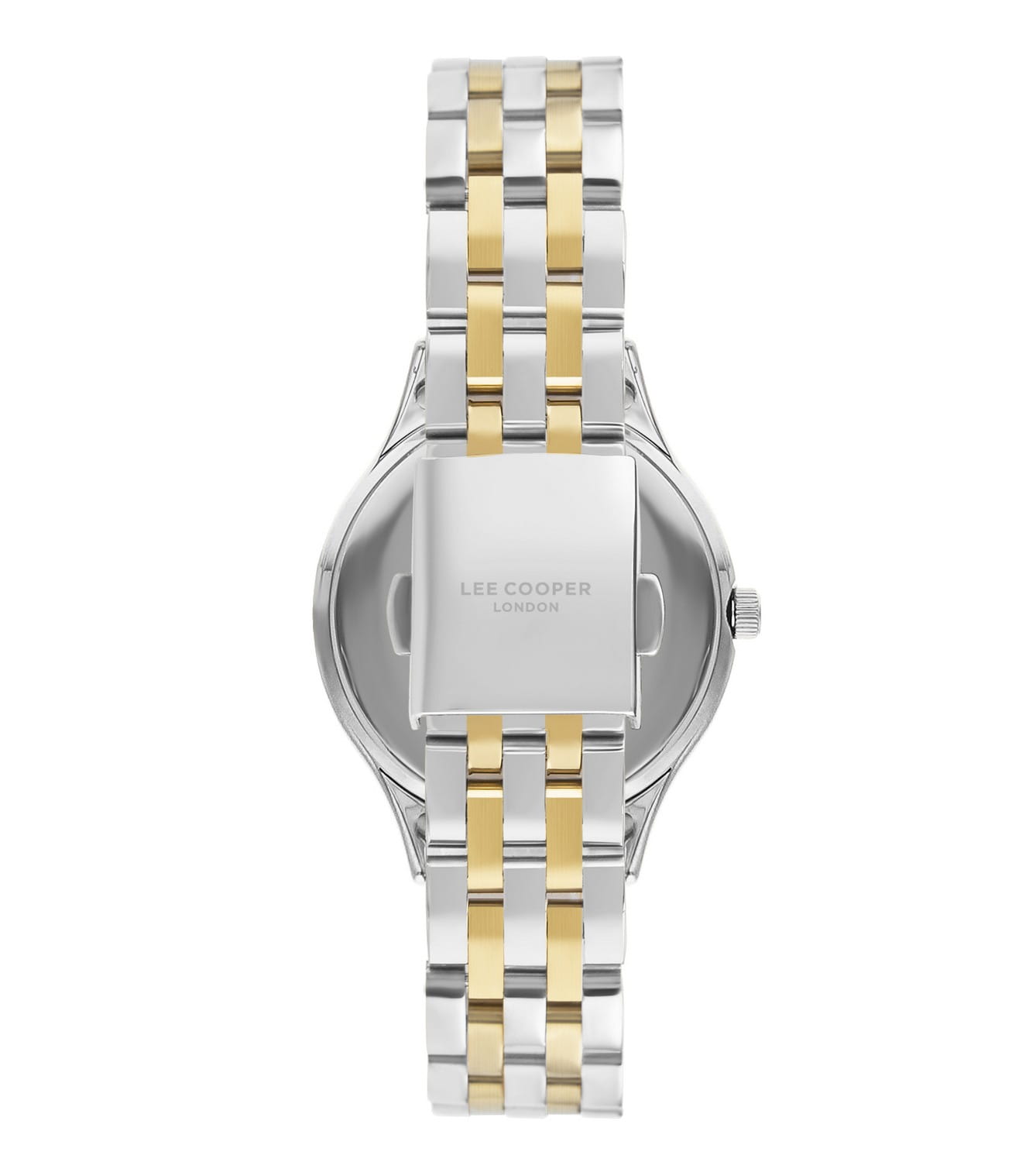 Женские часы Lee Cooper LC07867.230 выполнены в классическом стиле и сочетают строгий дизайн с надёжным механизмом. Модель оснащена кварцевым механизмом, обеспечивающим точность хода и минимальное обслуживание. Корпус круглой формы имеет размер 35 мм, изготовленный из суперметалла, идеально сбалансирован и элегантен. Неповоротный безельБезельВнешний ободок, закрепляющий стекло. В спортивных часах так называется поворотное кольцо с делениями на циферблате, выполняет роль таймера – замеряет отрезки времени на шкале. Неподвижный безель – элемент декора. Однонаправленно вращающийся безель на дайверских часах позволяет фиксировать моменты погружения и выныривания на поверхность. с IP-покрытиемIP-покрытиеМетод ионного напыления. Демонстрирует повышенную устойчивость к истиранию, окислению и химическим веществам. Под воздействием высокого давления и температуры около 1500°C молекулы металла надёжно соединяются с частицами корпуса часов..  Циферблат серебристого цвета дополнен вставками из циркона для чёткого отсчёта времени. Защиту циферблата обеспечивает минеральное стеклоМинеральное стеклоМинеральное стекло представляет собой искусственно выращенный минерал кварца. Такое стекло отличается особой устойчивостью к повреждениям и царапинам. Уступает по некоторым качествам сапфировому стеклу., устойчивое к мелким механическим повреждениям. Браслет из нержавеющей стали с частичным IP-покрытиемIP-покрытиеМетод ионного напыления. Демонстрирует повышенную устойчивость к истиранию, окислению и химическим веществам. Под воздействием высокого давления и температуры около 1500°C молекулы металла надёжно соединяются с частицами корпуса часов. фиксируется на раскладной застёжкеРаскладная застёжкаТакой тип застёжки используется только на браслетах из металла. Она никогда не раскрывается полностью, происходит разделение на 2 и более частей. Раскладывающая застёжка снизит вероятность потери часов к минимуму.. Водозащита 3 АТМ позволяет использовать часы в повседневных условиях без риска повреждения от случайных брызг воды. Это сочетание классического дизайна, прочности материалов и качества исполнения для уверенных в себе женщин.