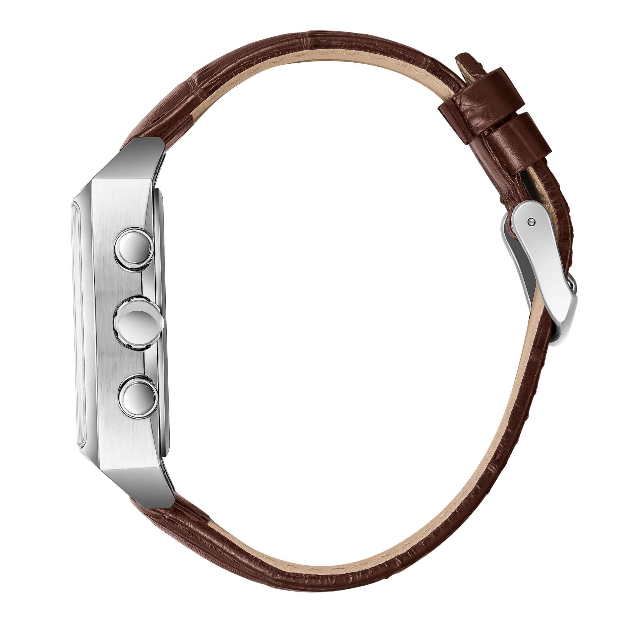 Мужские наручные часы Lee Cooper LC08180.362 оснащены кварцевым механизмом, обеспечивающий высокую точность хода и надежность. Элегантный корпус часов выполнен из суперметалла серебристого цвета, что делает их устойчивыми к внешним воздействиям и придает благородный вид. Циферблат украшен классическими стрелками с люминесцентным покрытиемЛюминесцентное покрытиеПозволяет считывать показания времени в темноте. Производители наносят на стрелки, часовые индексы, безель или поверхность циферблата светонакопительный состав, дающий холодное свечение., гармонично дополняющим общий дизайн модели. Для защиты циферблата используется минеральное стеклоМинеральное стеклоМинеральное стекло представляет собой искусственно выращенный минерал кварца. Такое стекло отличается особой устойчивостью к повреждениям и царапинам. Уступает по некоторым качествам сапфировому стеклу., устойчивое к царапинам и механическим повреждениям. Корпус размером 40 мм x 48 мм, что делает часы заметными и подходящими. Кожаный ремешок на стандартной застёжке обеспечивает комфортное и безопасное ношение. Окошко даты находится в положении 4 часа. Часы обладают водонепроницаемостью до 50 метров (5 АТМ), что позволяет использовать их в повседневной жизни, включая контакт с водой при мытье рук или дожде. Эти часы станут идеальным выбором для мужчин, ценящих стиль, качество и функциональность.