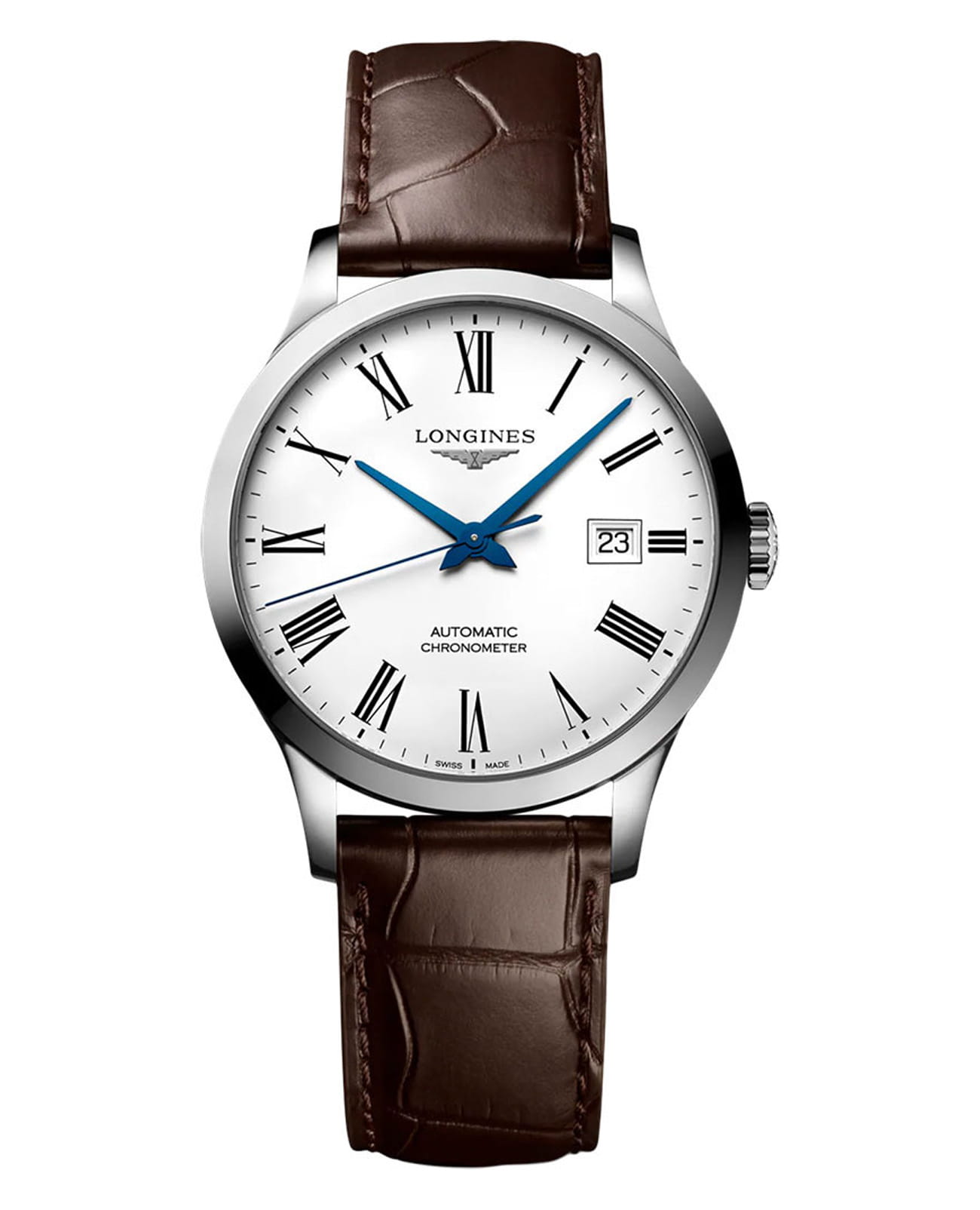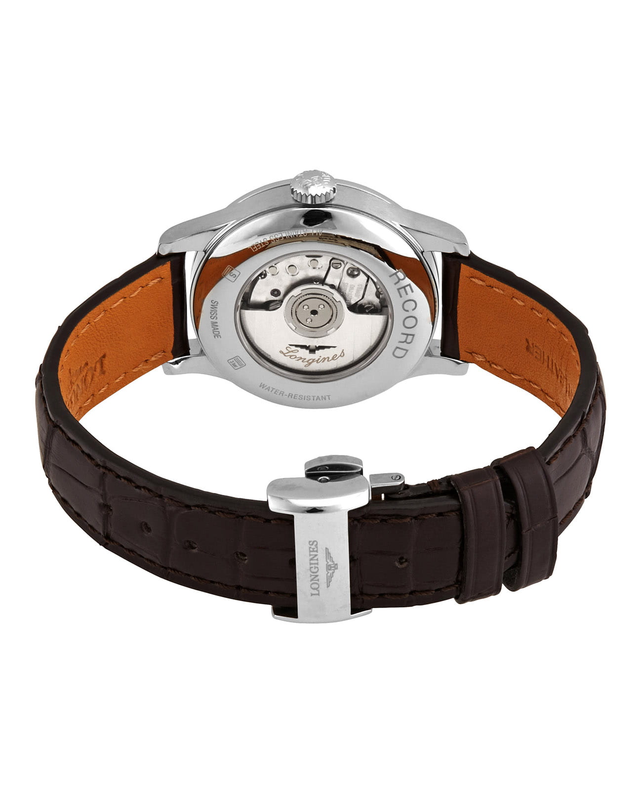 Женские швейцарские механические часы с автоподзаводом Longines Record L2.321.4.11.2. Сапфировое стеклоСапфировое стеклоПрочный и надёжный материал из кристалла сапфира синтетического происхождения, характеризующийся особой твёрдостью и устойчивостью к царапинам и повреждениям. устойчивое к появлению царапин, обладающее высокой прозрачностью. Корпус часов из нержавеющей стали. Метки в виде римских цифр. Окошко даты в положении 3 часов. Прозрачная задняя крышка. Класс водозащиты: 30 метров, позволит защитить корпус от случайных брызг или капель дождя. Ремешок из кожи на раскладной застёжкеРаскладная застёжкаТакой тип застёжки используется только на браслетах из металла. Она никогда не раскрывается полностью, происходит разделение на 2 и более частей. Раскладывающая застёжка снизит вероятность потери часов к минимуму..