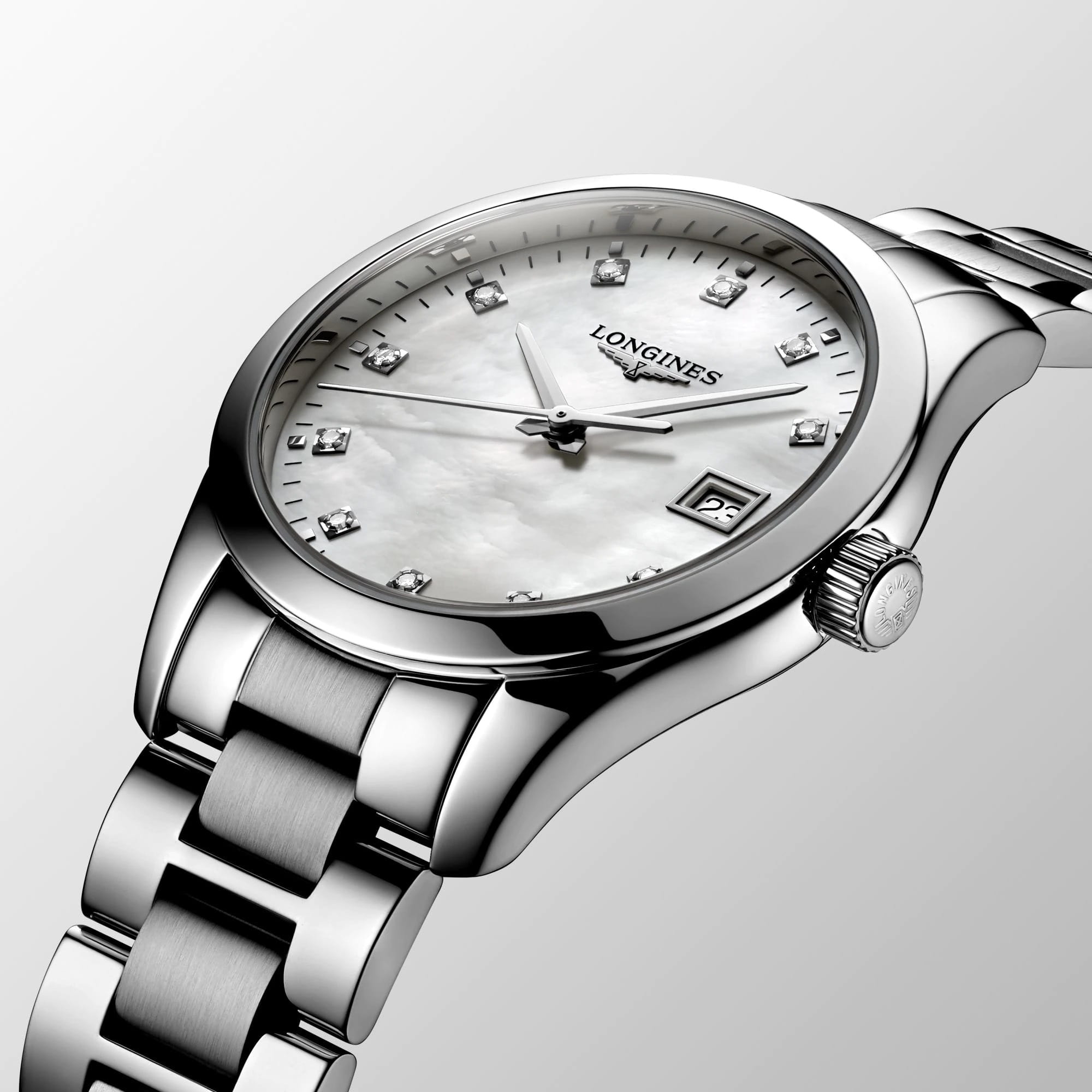 Женские швейцарские часы Longines Conquest Classic L2.386.4.87.6 привлекают роскошным сиянием и элегантным стилем.