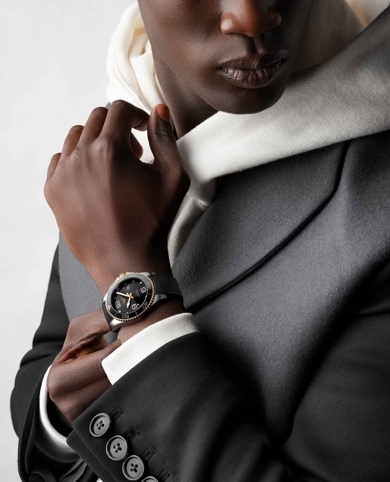 Мужские швейцарские механические часы для дайвинга Longines Hydroconquest L3.782.3.56.9. Сапфировое стеклоСапфировое стеклоПрочный и надёжный материал из кристалла сапфира синтетического происхождения, характеризующийся особой твёрдостью и устойчивостью к царапинам и повреждениям. с многослойным антибликовым покрытием с обеих сторон, устойчивое к появлению царапин, обладающее высокой прозрачностью. Корпус часов изготовлен из стали. Вращающийся безельБезельВнешний ободок, закрепляющий стекло. В спортивных часах так называется поворотное кольцо с делениями на циферблате, выполняет роль таймера – замеряет отрезки времени на шкале. Неподвижный безель – элемент декора. Однонаправленно вращающийся безель на дайверских часах позволяет фиксировать моменты погружения и выныривания на поверхность. из стали с PVD-покрытиемPVDУльтратонкое покрытие наносится в технике вакуумного напыления, сочетает в себе нитрид титана особой прочности со слоем золота или оксида хрома. Несёт в себе декоративную или защитную функцию. и керамики, защищенный от царапин, никогда не изнашивается и не выцветает. Стрелки и метки с люминесцентным покрытиемЛюминесцентное покрытиеПозволяет считывать показания времени в темноте. Производители наносят на стрелки, часовые индексы, безель или поверхность циферблата светонакопительный состав, дающий холодное свечение.. Окошко даты находится в положении 3 часов. Класс водозащиты: 300 метров, позволит плавать, нырять и заниматься другими водными видами спорта. Каучковый ремешок на раскладной застёжкеРаскладная застёжкаТакой тип застёжки используется только на браслетах из металла. Она никогда не раскрывается полностью, происходит разделение на 2 и более частей. Раскладывающая застёжка снизит вероятность потери часов к минимуму..