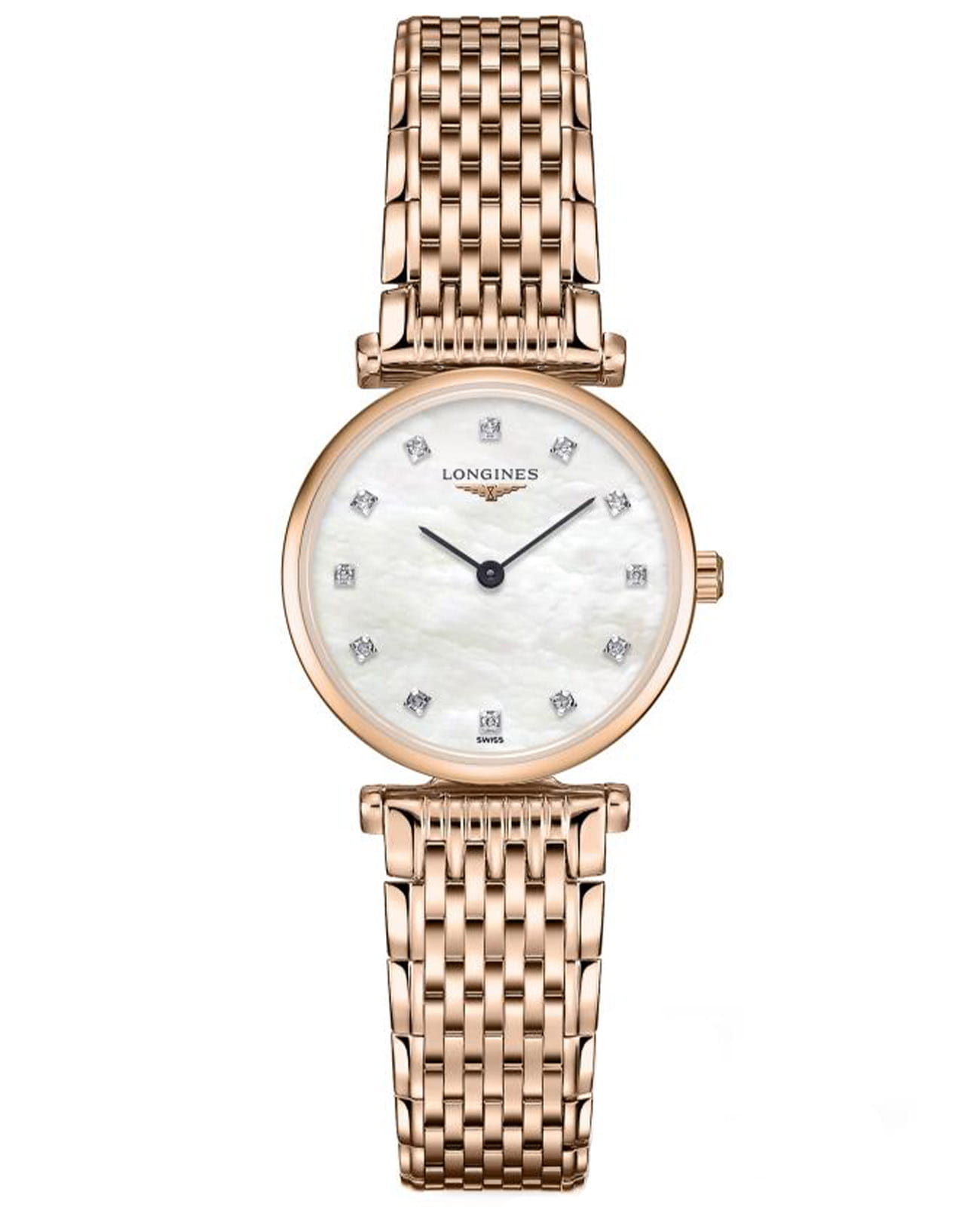 Женские швейцарские часы Longines La Grande Classique L4.209.1.97.8 очаровывают роскошным сиянием. Сапфировое стеклоСапфировое стеклоПрочный и надёжный материал из кристалла сапфира синтетического происхождения, характеризующийся особой твёрдостью и устойчивостью к царапинам и повреждениям. с антибликовым покрытием, устойчивое к мелким механическим повреждениям. Циферблат с 12 бриллиантами группы Top Wesselton VS-SI общим весом 0.048 карата. Корпус из нержавеющей стали с розовым PVD-покрытиемPVDУльтратонкое покрытие наносится в технике вакуумного напыления, сочетает в себе нитрид титана особой прочности со слоем золота или оксида хрома. Несёт в себе декоративную или защитную функцию. надёжно защищает швейцарский кварцевый механизм L420. Класс водозащиты: 30 метров, позволит защитить корпус от случайных брызг или капель дождя. Стальной браслет с PVD-покрытиемPVDУльтратонкое покрытие наносится в технике вакуумного напыления, сочетает в себе нитрид титана особой прочности со слоем золота или оксида хрома. Несёт в себе декоративную или защитную функцию. на застёжке-бабочке с кнопкамиЗастёжка "бабочка"Такой вид застёжки дополняется предохранителями, помогающими избежать случайного раскрытия браслета. Обладают изящным исполнением. .