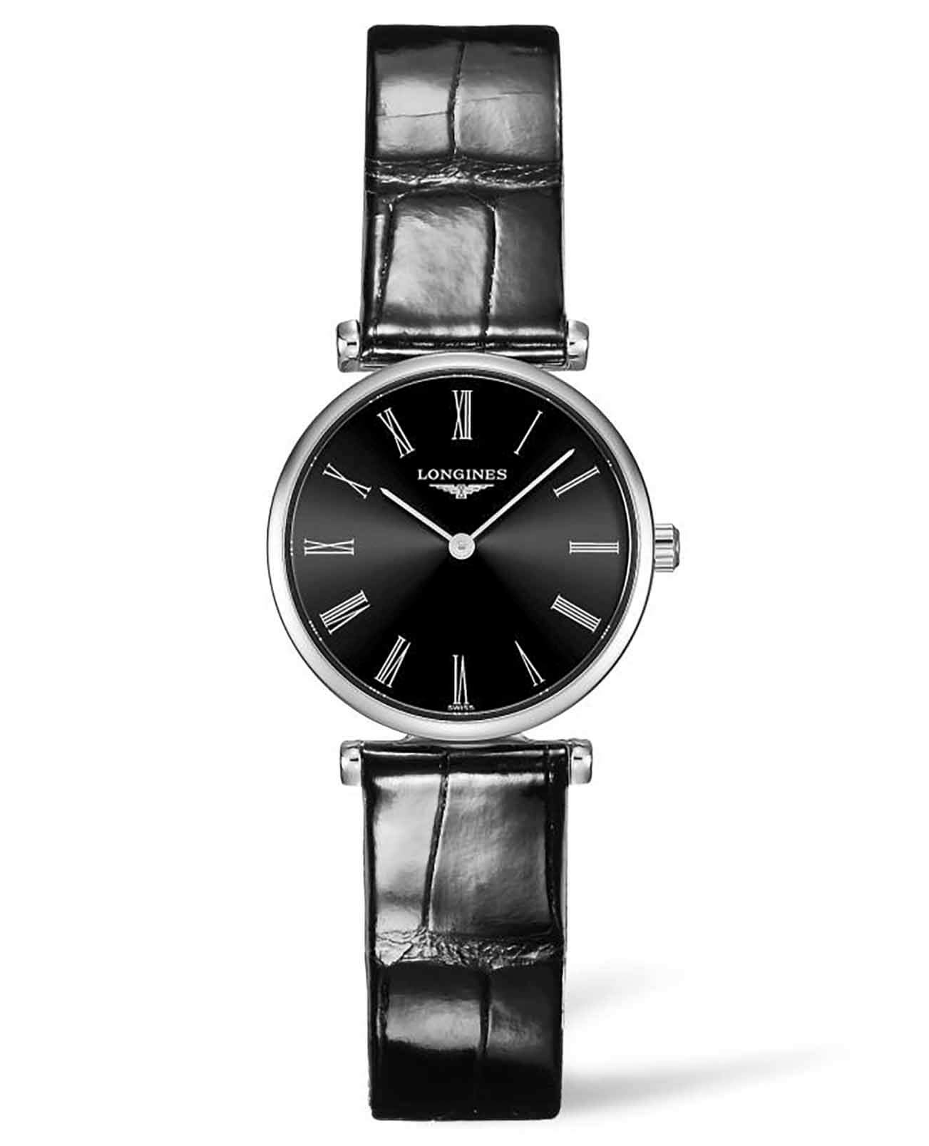 Женские швейцарские часы Longines La Grande Classique L4.209.4.51.2 поражают изяществом и эстетическим исполнением. Чёрный компактный циферблат дополнен контрастными стрелками и винтажными римскими цифрами. Швейцарский кварцевый калибр L209 отличается абсолютной точностью хода. Стекло из сапфира устойчиво к царапинам. Производство и сборка: Швейцария.