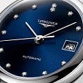 Швейцарские механические часы с автоподзаводом Longines Elegant L4.309.4.97.6. Сапфировое стеклоСапфировое стеклоПрочный и надёжный материал из кристалла сапфира синтетического происхождения, характеризующийся особой твёрдостью и устойчивостью к царапинам и повреждениям. с многослойным антибликовым покрытием с обеих сторон, устойчивое к появлению царапин, обладающее высокой прозрачностью. Корпус часов изготовлен из стали. Циферблат с 12 бриллиантами группы Top Wesselton VS-SI общим весом 0.026 карата. Окошко даты находится в положении 3 часа. Класс водозащиты: 30 метров, позволит защитить корпус от случайных брызг или капель дождя. Стальной браслет на застёжке «бабочка» с кнопкамиЗастёжка "бабочка"Такой вид застёжки дополняется предохранителями, помогающими избежать случайного раскрытия браслета. Обладают изящным исполнением. .