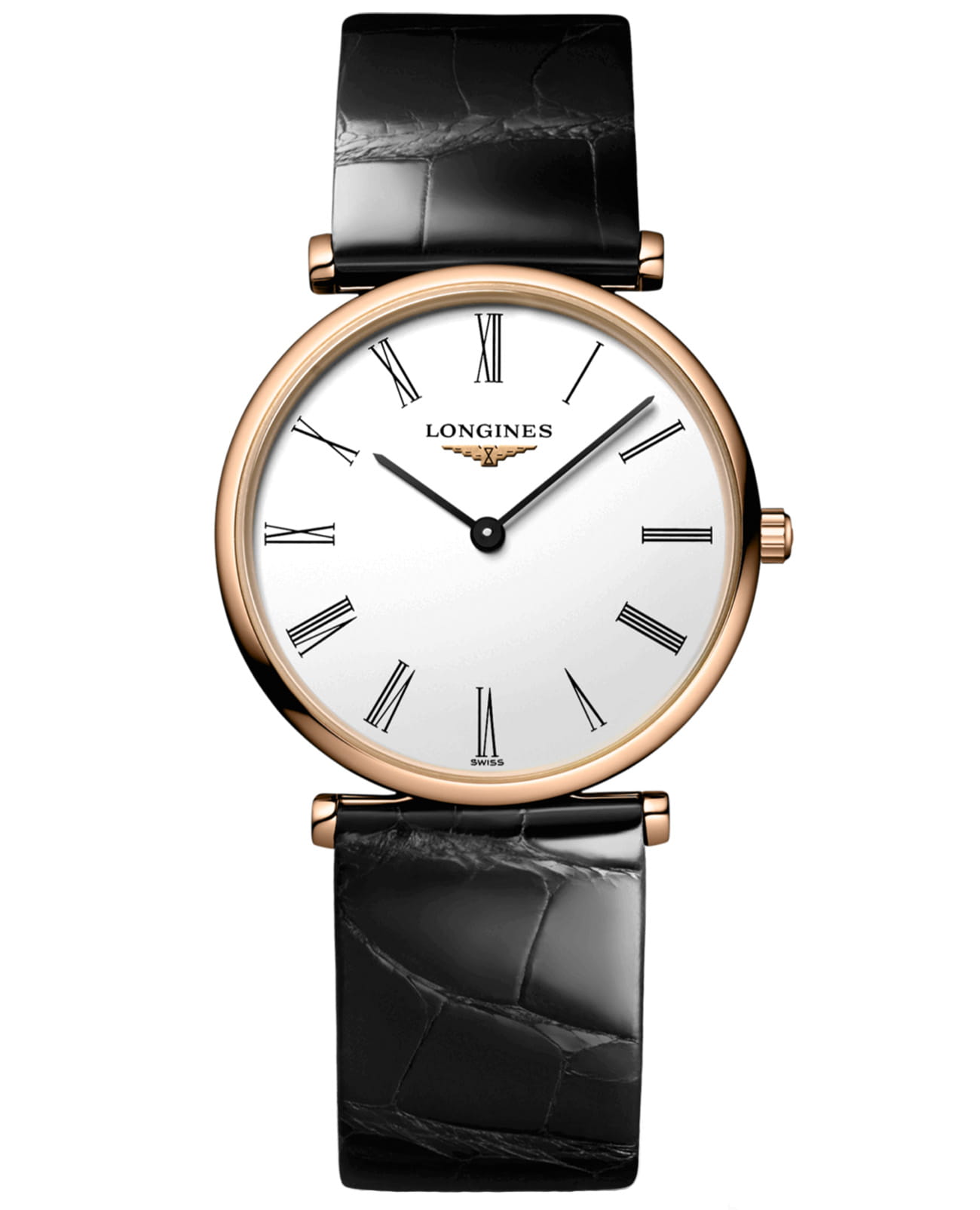 Женские швейцарские часы Longines La Grande Classique L4.512.1.91.2, кварцевый механизм с высокой точностью. Сапфировое стеклоСапфировое стеклоПрочный и надёжный материал из кристалла сапфира синтетического происхождения, характеризующийся особой твёрдостью и устойчивостью к царапинам и повреждениям. устойчивое к появлению царапин, обладающее высокой прозрачностью. Корпус часов изготовлен из стали с PVD-покрытиемPVDУльтратонкое покрытие наносится в технике вакуумного напыления, сочетает в себе нитрид титана особой прочности со слоем золота или оксида хрома. Несёт в себе декоративную или защитную функцию.. Римская индикация времени. Эта серия является символом классической элегантности и вневременной утонченности Longines и отличается очень тонким профилем. Класс водозащиты: 30 метров, позволит защитить корпус от случайных брызг или капель дождя. Ремешок из кожи аллигатора на стандартной застёжке.