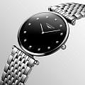 Часы Longines La Grande Classique de Longines L4.512.4.58.6 представляют собой воплощение классической элегантности и утончённости, присущих бренду Longines. Корпус диаметром 29 мм выполнен из нержавеющей стали с водозащитой до 3 бар (30 метров). Чёрный лакированный циферблат украшен 12 бриллиантовыми часовыми метками общим весом 0,081 карата и серебристыми полированными стрелками. Циферблат защищён сапфировым стекломСапфировое стеклоПрочный и надёжный материал из кристалла сапфира синтетического происхождения, характеризующийся особой твёрдостью и устойчивостью к царапинам и повреждениям.. Модель оснащена кварцевым механизмом Longines L420, обеспечивающим точное отображение времени. Браслет из нержавеющей стали с застёжкой бабочкойЗастёжка "бабочка"Такой вид застёжки дополняется предохранителями, помогающими избежать случайного раскрытия браслета. Обладают изящным исполнением. подчёркивает утончённый стиль модели. Эти часы идеально подходят для тех, кто ценит классическую элегантность и надёжность.