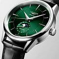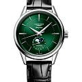 Мужские швейцарские механические часы с автоподзаводом Longines Flagship Heritage L4.815.4.02.2. Корпус часов изготовлен из нержавеющей стали. Сапфировое стеклоСапфировое стеклоПрочный и надёжный материал из кристалла сапфира синтетического происхождения, характеризующийся особой твёрдостью и устойчивостью к царапинам и повреждениям. повышенной прозрачности, устойчивое к мелким механическим повреждениям. Дата и индикатор фазы луны на дополнительном циферблате. Стрелки с люминесцентным покрытиемЛюминесцентное покрытиеПозволяет считывать показания времени в темноте. Производители наносят на стрелки, часовые индексы, безель или поверхность циферблата светонакопительный состав, дающий холодное свечение. Super-LumiNova. Класс водозащиты: 30 метров, позволит защитить корпус от случайных брызг или капель дождя. Ремешок из кожи аллигатора на стандартной застёжке.