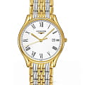 Белый матовый циферблат дополнен позолоченными стрелками. Корпус из нержавеющей стали 316L с жёлтым PVD-покрытиемPVDУльтратонкое покрытие наносится в технике вакуумного напыления, сочетает в себе нитрид титана особой прочности со слоем золота или оксида хрома. Несёт в себе декоративную или защитную функцию. надёжно защищает швейцарский кварцевый механизм L157 от повреждений. Дополнительные функции: календарь, индикатор EOLEOLПредставляет собой систему, уведомляющую владельца часов о необходимости замены элемента питания. За 2 недели до полного разряда батарейки секундная стрелка перестаёт ходить чётко и начинает перепрыгивать на 3-4 деления..