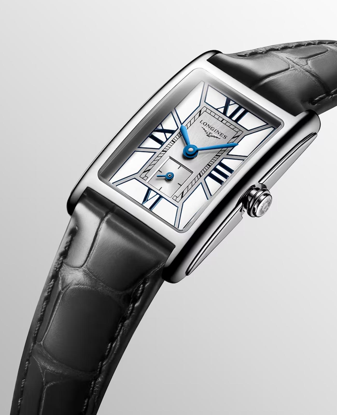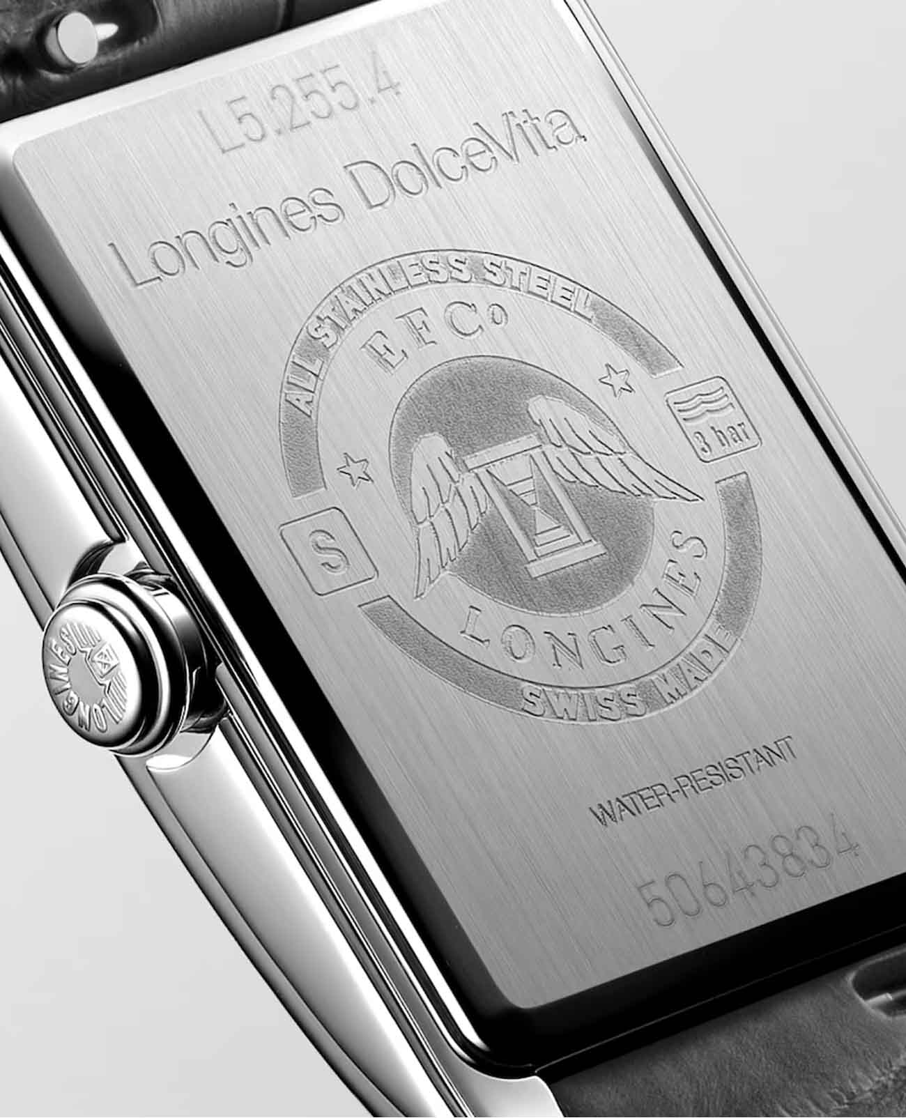 Женские швейцарские часы Longines DolceVita L5.255.4.75.2, кварцевый механизм с высокой точностью. Сапфировое стеклоСапфировое стеклоПрочный и надёжный материал из кристалла сапфира синтетического происхождения, характеризующийся особой твёрдостью и устойчивостью к царапинам и повреждениям. устойчивое к появлению царапин, обладающее высокой прозрачностью. Корпус часов изготовлен из нержавеющей стали. Метки в виде римских цифр. Малая секундная стрелка в положении 6 часов. Класс водозащиты: 30 метров, позволит защитить корпус от случайных брызг или капель дождя. Кожаный ремешок на стандартной застежке.