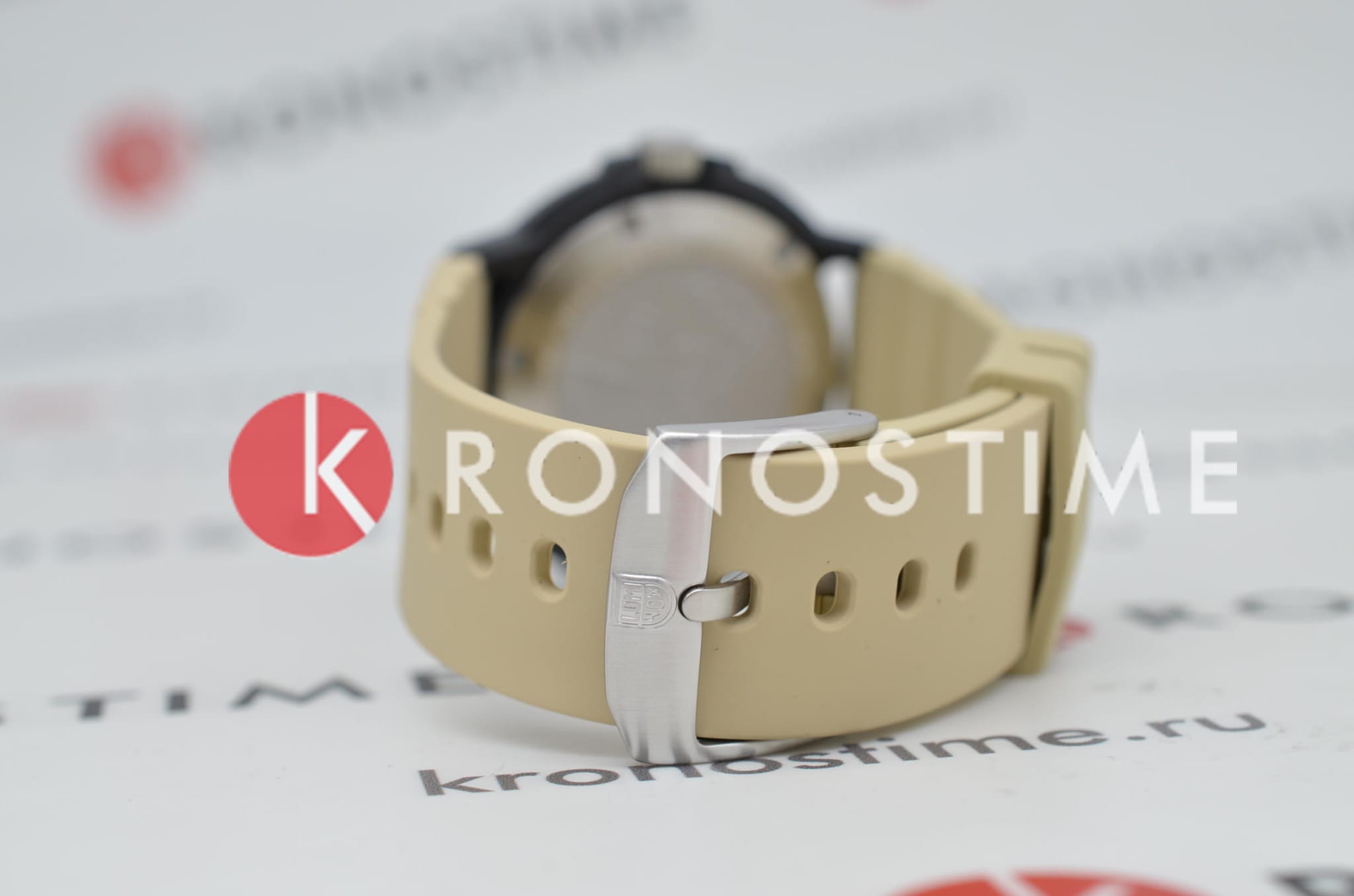 Мужские наручные часы Luminox XS.3010.EVO.S из коллекции Original Navy SEAL сочетают в себе спортивный дизайн и надежность швейцарского качества . Модель обладает круглым корпусом диаметром 43 мм, изготовленным из карбонаКарбонОт «carbon», «carbone» - углерод, углепластик - полимерный композиционный материал из переплетённых под определенным углом между собой нитей углеродного волокна, применяется для изготовления лёгких, но прочных деталей. В часах часто используют для украшения циферблатов и ремешков. Так же карбон используется в изготовлении корпусов. Такие корпуса обладают антикоррозионным свойством, не поддаются электромагнитному излучению, обладают повышенной прочностью и противоударностью. (CARBONOX™), что обеспечивает высокую устойчивость к внешним воздействиям при сохранении легкости. Циферблат песочного цвета украшен контрастными метками и стрелками с , гарантирующим постоянную видимость времени даже в условиях низкой освещенности благодаря системе LLTLLTLLT — это автономный механизм подсветки, основанный на использовании микроскопических газонаполненных элементов. Специальные герметичные капсулы из боросиликатного стекла, интегрированные в циферблат, генерируют свечение без необходимости подключения к внешним источникам энергии. Для их работы не требуется ни дополнительный свет, ни механическое воздействие (например, нажатие кнопки). Свечение возникает благодаря химическому процессу: реакция между тритием, заключенным в капсулах, и люминофорным покрытием создает стабильное автономное освещение. Технология обеспечивает энергетическую независимость и долговечность подсветки. (микрогазовые огни). Часы оснащены кварцевым механизмом швейцарского производства, обеспечивающим точность хода ±15 секунд в месяц. Защиту циферблата обеспечивает прочное сапфировое стеклоСапфировое стеклоПрочный и надёжный материал из кристалла сапфира синтетического происхождения, характеризующийся особой твёрдостью и устойчивостью к царапинам и повреждениям. с антибликовым покрытиемАнтибликовое покрытиеСлой оксида металла в 0,13-0,3 микрон, благодаря которому стекло часов не бликует и не отражает свет. Антибликовое покрытие уменьшает отражение света в 10 раз, обеспечивая отличную читаемость показателей циферблата., устойчивое к царапинам и механическим повреждениям . Водонепроницаемость модели достигает 20 атмосфер (200 метров), что делает их подходящими для плавания и активного отдыха на воде, включая дайвинг. Модель также оснащена безелемБезельВнешний ободок, закрепляющий стекло. В спортивных часах так называется поворотное кольцо с делениями на циферблате, выполняет роль таймера – замеряет отрезки времени на шкале. Неподвижный безель – элемент декора. Однонаправленно вращающийся безель на дайверских часах позволяет фиксировать моменты погружения и выныривания на поверхность. с односторонним вращением, что добавляет функциональности при использовании в водных условиях. Ремешок выполнен из каучука, что обеспечивает комфортное ношение в течение дня. Дополнительно часы имеют окно даты в положении «3 часа», что делает их практичными для повседневного использования. Сочетание современных технологий, надежности и стильного дизайна делает Luminox XS.3010.EVO.S идеальным выбором для ценителей качественных аксессуаров.