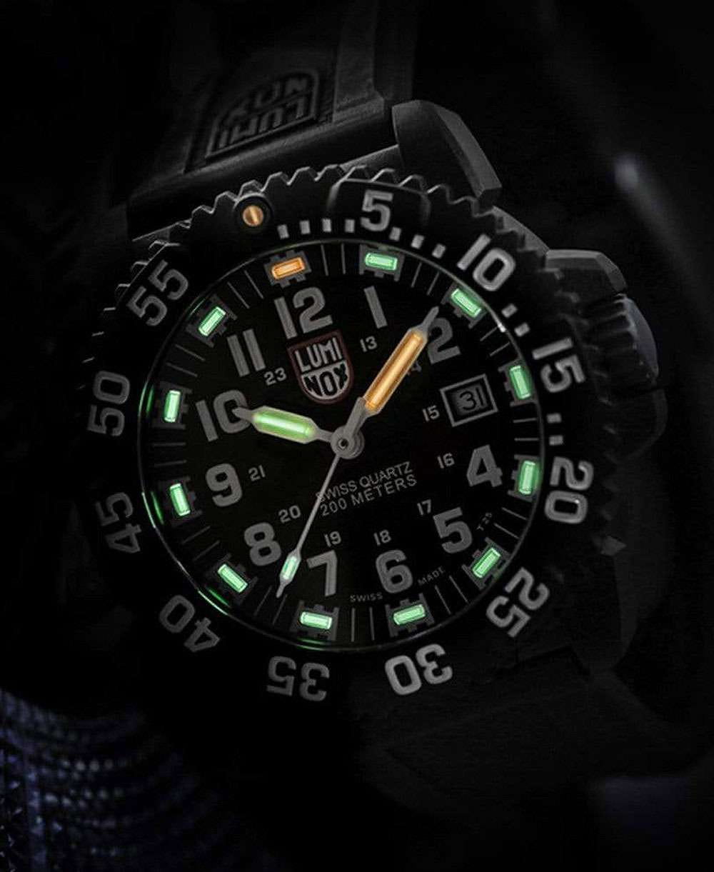 Часы Luminox XS.3051.F — это воплощение стиля и надежности для мужчин, которые не боятся преодолевать преграды. Швейцарские часы оснащены кварцевым механизмом с калибром Ronda 515 HH6, гарантируя точность и долговечность работы. Корпус выполнен из пластика, усиленного прессованным карбоном, что обеспечивает прочность и легкость конструкции. Черный циферблат защищен минеральным стекломМинеральное стеклоМинеральное стекло представляет собой искусственно выращенный минерал кварца. Такое стекло отличается особой устойчивостью к повреждениям и царапинам. Уступает по некоторым качествам сапфировому стеклу. повышенной прочности, способным выдерживать значительные нагрузки. Водозащита до 200 метров позволяет использовать часы в водных видах спорта и экстремальных условиях. Вращающийся безельБезельВнешний ободок, закрепляющий стекло. В спортивных часах так называется поворотное кольцо с делениями на циферблате, выполняет роль таймера – замеряет отрезки времени на шкале. Неподвижный безель – элемент декора. Однонаправленно вращающийся безель на дайверских часах позволяет фиксировать моменты погружения и выныривания на поверхность. и поддержка 12- и 24-часового формата времени делают часы функциональными и удобными в использовании. Эксклюзивная LLTLLTLLT — это автономный механизм подсветки, основанный на использовании микроскопических газонаполненных элементов. Специальные герметичные капсулы из боросиликатного стекла, интегрированные в циферблат, генерируют свечение без необходимости подключения к внешним источникам энергии. Для их работы не требуется ни дополнительный свет, ни механическое воздействие (например, нажатие кнопки). Свечение возникает благодаря химическому процессу: реакция между тритием, заключенным в капсулах, и люминофорным покрытием создает стабильное автономное освещение. Технология обеспечивает энергетическую независимость и долговечность подсветки.-подсветка с тритием обеспечивает видимость в полной темноте на протяжении 25 лет: часовая и секундная стрелки, а также часовые метки светятся зеленым цветом, минутная стрелка и нулевая метка на безелеБезельВнешний ободок, закрепляющий стекло. В спортивных часах так называется поворотное кольцо с делениями на циферблате, выполняет роль таймера – замеряет отрезки времени на шкале. Неподвижный безель – элемент декора. Однонаправленно вращающийся безель на дайверских часах позволяет фиксировать моменты погружения и выныривания на поверхность. — оранжевым. Метки в виде арабских цифр и окошко даты в положении 3 часа добавляют практичности и стильности. Задняя крышка закреплена стальными винтами, а рифленая заводная головка с защитой выполнена из стали. Часы снабжены удобным полиуретановым ремешком с классической застежкой, обеспечивающим комфортное ношение.
