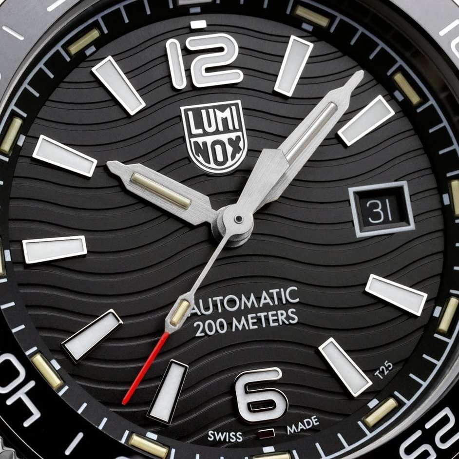 Мужские швейцарские наручные часы Luminox Pacific Diver Automatic XS.3101 олицетворяют собой идеальное сочетание элегантного дизайна и передовых технологий. Оснащены они высокоточным кварцевым механизмом, который обеспечивает исключительную точность и надежность в работе. Циферблат этих часов защищен прочным сапфировым стекломСапфировое стеклоПрочный и надёжный материал из кристалла сапфира синтетического происхождения, характеризующийся особой твёрдостью и устойчивостью к царапинам и повреждениям. с антибликовым покрытиемАнтибликовое покрытиеСлой оксида металла в 0,13-0,3 микрон, благодаря которому стекло часов не бликует и не отражает свет. Антибликовое покрытие уменьшает отражение света в 10 раз, обеспечивая отличную читаемость показателей циферблата., устойчивым к царапинам и обладающим высокой степенью прозрачности, что гарантирует отличное визуальное восприятие информации независимо от условий освещения. Корпус часов выполнен из высококачественной нержавеющей стали 316L, что обеспечивает их долговечность и стойкость к механическим повреждениям. Стрелки с LLTLLTLLT — это автономный механизм подсветки, основанный на использовании микроскопических газонаполненных элементов. Специальные герметичные капсулы из боросиликатного стекла, интегрированные в циферблат, генерируют свечение без необходимости подключения к внешним источникам энергии. Для их работы не требуется ни дополнительный свет, ни механическое воздействие (например, нажатие кнопки). Свечение возникает благодаря химическому процессу: реакция между тритием, заключенным в капсулах, и люминофорным покрытием создает стабильное автономное освещение. Технология обеспечивает энергетическую независимость и долговечность подсветки.-подсветкой, обеспечивают отличную видимость даже в условиях недостаточной освещенности, что делает их удобными для использования в любых условиях. Окошко даты, расположенное на отметке 3 часа, позволяет быстро и удобно узнавать текущее число. Класс водозащиты 200 метров, позволит плавать, нырять и заниматься другими водными видами спорта. Каучуковый ремешок на стандартной застежке обеспечивает комфорт при ношении и универсальность использования. Эти часы, оснащенные автоматическим механизмом Sellita SW 220-1, сочетают в себе безельБезельВнешний ободок, закрепляющий стекло. В спортивных часах так называется поворотное кольцо с делениями на циферблате, выполняет роль таймера – замеряет отрезки времени на шкале. Неподвижный безель – элемент декора. Однонаправленно вращающийся безель на дайверских часах позволяет фиксировать моменты погружения и выныривания на поверхность. из нержавеющей стали с черным ремешком и черной керамической кольцевой вставкой вращается в одном направлении, что подчеркивает их стильный и универсальный характер.