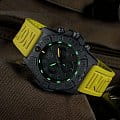 Часы Luminox XS.CE81.BO — это надежные и стильные швейцарские часы с кварцевым механизмом, оснащенные калибром Ronda 5030.D. Корпус выполнен из пластика, усиленного прессованным карбоном CARBONOX, что обеспечивает прочность и долговечность. Черный циферблат защищен минеральным стекломМинеральное стеклоМинеральное стекло представляет собой искусственно выращенный минерал кварца. Такое стекло отличается особой устойчивостью к повреждениям и царапинам. Уступает по некоторым качествам сапфировому стеклу. повышенной прочности, что делает его устойчивым к царапинам и ударам. Каучуковый ремешок желтого цвета с раскладной застёжкойРаскладная застёжкаТакой тип застёжки используется только на браслетах из металла. Она никогда не раскрывается полностью, происходит разделение на 2 и более частей. Раскладывающая застёжка снизит вероятность потери часов к минимуму. обеспечивает комфортное ношение и надежность фиксации на запястье. Эти часы обладают впечатляющим уровнем водозащиты до 200 метров, что делает их подходящими для водных видов спорта и активного отдыха. Светящаяся метка на безелеБезельВнешний ободок, закрепляющий стекло. В спортивных часах так называется поворотное кольцо с делениями на циферблате, выполняет роль таймера – замеряет отрезки времени на шкале. Неподвижный безель – элемент декора. Однонаправленно вращающийся безель на дайверских часах позволяет фиксировать моменты погружения и выныривания на поверхность., который вращается в одном направлении, добавляет функциональности и удобства, особенно в условиях низкой освещенности. Технология LLTLLTLLT — это автономный механизм подсветки, основанный на использовании микроскопических газонаполненных элементов. Специальные герметичные капсулы из боросиликатного стекла, интегрированные в циферблат, генерируют свечение без необходимости подключения к внешним источникам энергии. Для их работы не требуется ни дополнительный свет, ни механическое воздействие (например, нажатие кнопки). Свечение возникает благодаря химическому процессу: реакция между тритием, заключенным в капсулах, и люминофорным покрытием создает стабильное автономное освещение. Технология обеспечивает энергетическую независимость и долговечность подсветки.-подсветки обеспечивает отличную видимость в темноте на протяжении 25 лет, позволяя контролировать время даже при полном отсутствии света. Часы-хронографХронографФункция позволяет измерять отрезки времени с особой точностью: часы, минуты, секунды. Верным признаком хронографа является наличие на циферблате 3 дополнительных окошек-счётчиков. обладают функцией секундомераСекундомерСекундоме́р — прибор, способный измерять интервалы времени с точностью до долей секунды. и поддерживают 12- и 24-часовой формат времени и календаря, что делает их практичными в использовании. Заводная головка снабжена защитой и двойной уплотнительной прокладкой для обеспечения герметичности, а задняя крышка крепится на винтах для дополнительной надежности.
