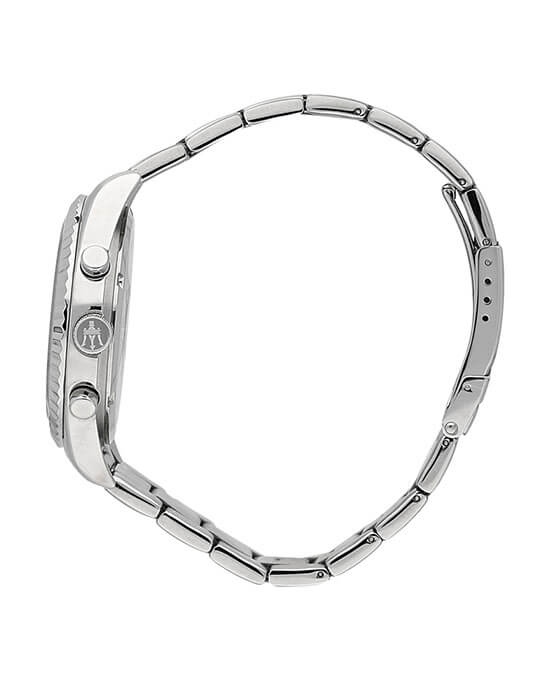 Мужские часы с хронографом Maserati COMPETIZIONE R8853100023, кварцевый механизм с высокой точностью. Класс водозащиты: 100 метров, позволит плавать, нырять и заниматься другими водными видами спорта. Корпус часов изготовлен из стали, серебристого цвета.