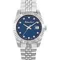 Женские кварцевые часы Mathey-Tissot Rolly D810ABU — это стильное сочетание элегантности и современного дизайна. Изящный корпус выполнен из нержавеющей стали, диаметром 30 мм, что придаст образу женственности и романтизма. Изысканный циферблат с метками в виде точек придает модели особый блеск. Циферблат защищен минеральным стекломМинеральное стеклоМинеральное стекло представляет собой искусственно выращенный минерал кварца. Такое стекло отличается особой устойчивостью к повреждениям и царапинам. Уступает по некоторым качествам сапфировому стеклу., обеспечивающий устойчивость к царапинам. Стрелки с люминесцентным покрытиемЛюминесцентное покрытиеПозволяет считывать показания времени в темноте. Производители наносят на стрелки, часовые индексы, безель или поверхность циферблата светонакопительный состав, дающий холодное свечение.. Рифленый безельБезельВнешний ободок, закрепляющий стекло. В спортивных часах так называется поворотное кольцо с делениями на циферблате, выполняет роль таймера – замеряет отрезки времени на шкале. Неподвижный безель – элемент декора. Однонаправленно вращающийся безель на дайверских часах позволяет фиксировать моменты погружения и выныривания на поверхность. серебристого цвета. Циферблат украшен кристаллами. Окошко даты находится в положении 3 часа. Часы оснащены надежным кварцевым механизмом. Стальной браслет на раскладной застёжкеРаскладная застёжкаТакой тип застёжки используется только на браслетах из металла. Она никогда не раскрывается полностью, происходит разделение на 2 и более частей. Раскладывающая застёжка снизит вероятность потери часов к минимуму., гарантирует комфортное и безопасное ношение. Класс водозащиты: 50 метров позволит защитить корпус от случайных брызг или капель дождя. Mathey-Tissot  — отличный выбор для тех, кто ценит утонченность и качество.