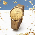 Женские швейцарские кварцевые часы Maurice Lacroix Eliros Date Sunshine EL1118-PVY01-090-9, кварцевый механизм с высокой точностью. Сапфировое стекло устойчивое к появлению царапин, обладающее высокой прозрачностью. Класс водозащиты: 50 метров, позволит защитить корпус от случайных брызг или капель дождя. Корпус часов изготовлен из стали, золотистого цвета.