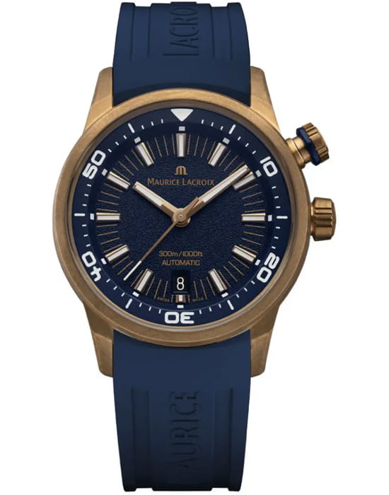 Мужские швейцарские часы Maurice Lacroix Pontos S Diver PT6248-BRZ0B-430-4, автоматический механизм с высокой точностью. Сапфировое стеклоСапфировое стеклоПрочный и надёжный материал из кристалла сапфира синтетического происхождения, характеризующийся особой твёрдостью и устойчивостью к царапинам и повреждениям. устойчивое к появлению царапин, обладающее высокой прозрачностью. Корпус изготовлен из бронзы. Стрелки и метки с люминесцентным покрытиемЛюминесцентное покрытиеПозволяет считывать показания времени в темноте. Производители наносят на стрелки, часовые индексы, безель или поверхность циферблата светонакопительный состав, дающий холодное свечение..Класс водозащиты: 300 метров, позволит плавать, нырять и заниматься другими водными видами спорта. Каучуковый ремешок.